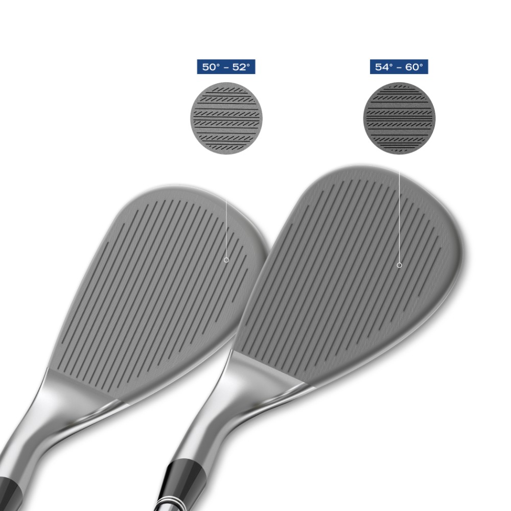A new, dynamic face blast and laser-milled line pattern, HydraZip maximizes friction for improved spin consistency in wet or dry conditions. Visually, CBX Full-Face 2 Wedge faces are much more matte than past Tour Satin offerings, noticeably reducing glare at address.