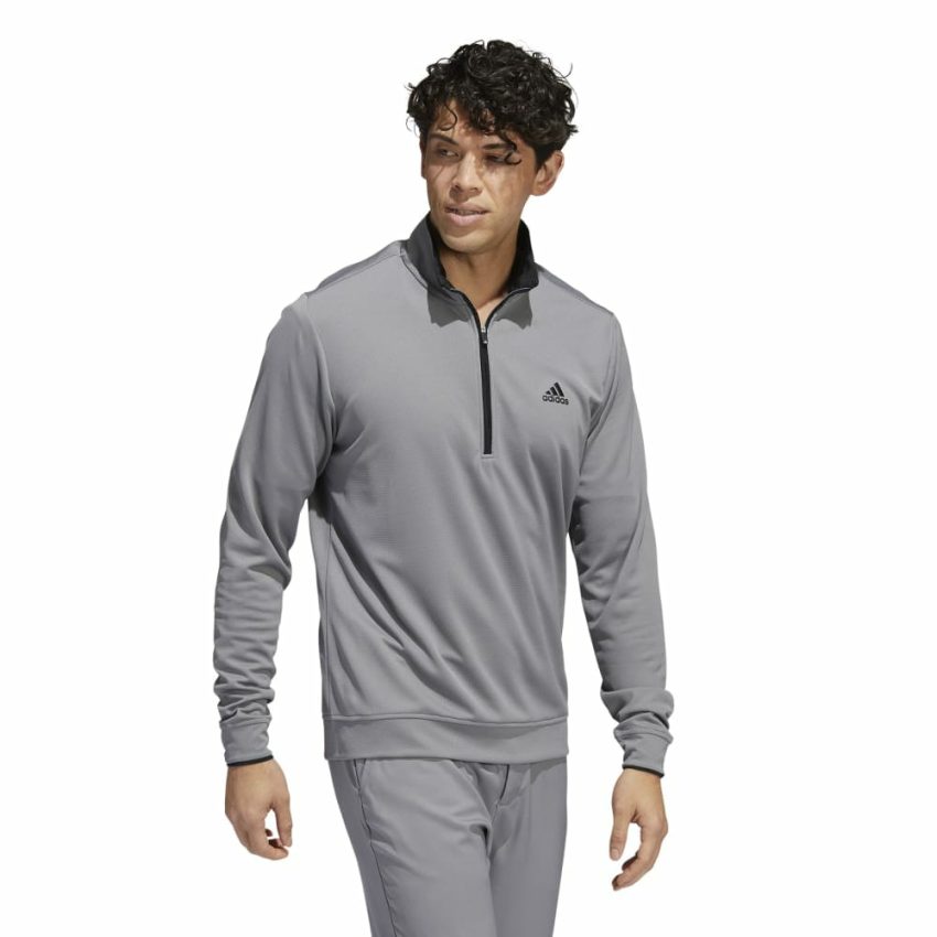 adidas lightweight 1/4 zip golf pullover is made of soft knit for comfort on the course. Moisture-absorbing AEROREADY keeps you dry, and built-in UV coverage lets you play with confidence on sunny days.