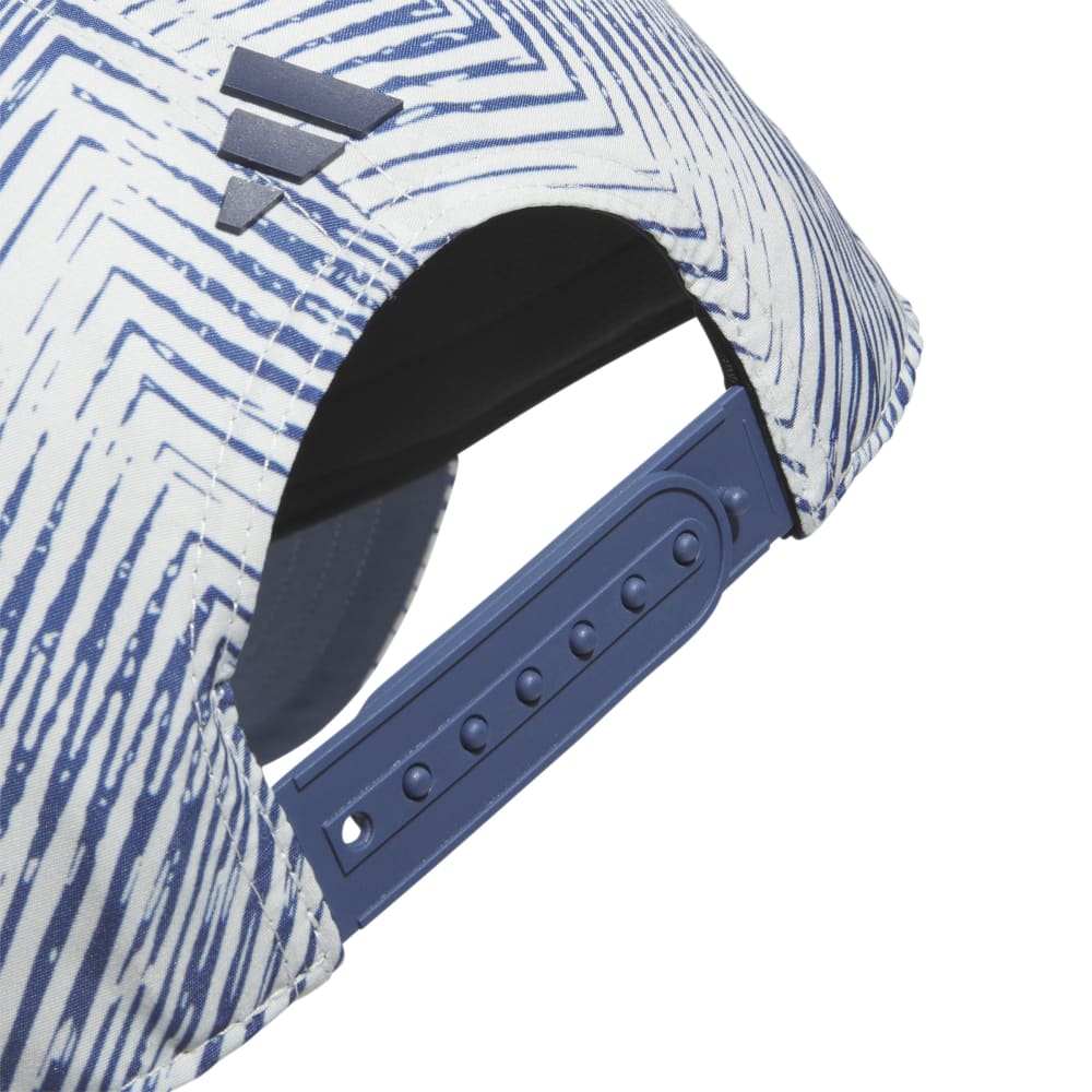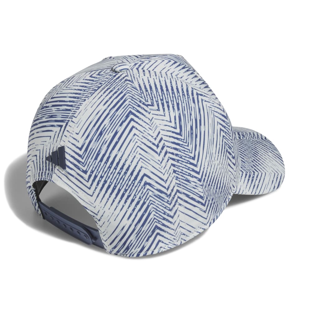 adidas golf cap makes a sporty statement with bold 3-Stripes and an allover print design. Made for maximum coverage, its pre-curved brim provides essential shade, while an adjustable snapback closure ensures the right fit.