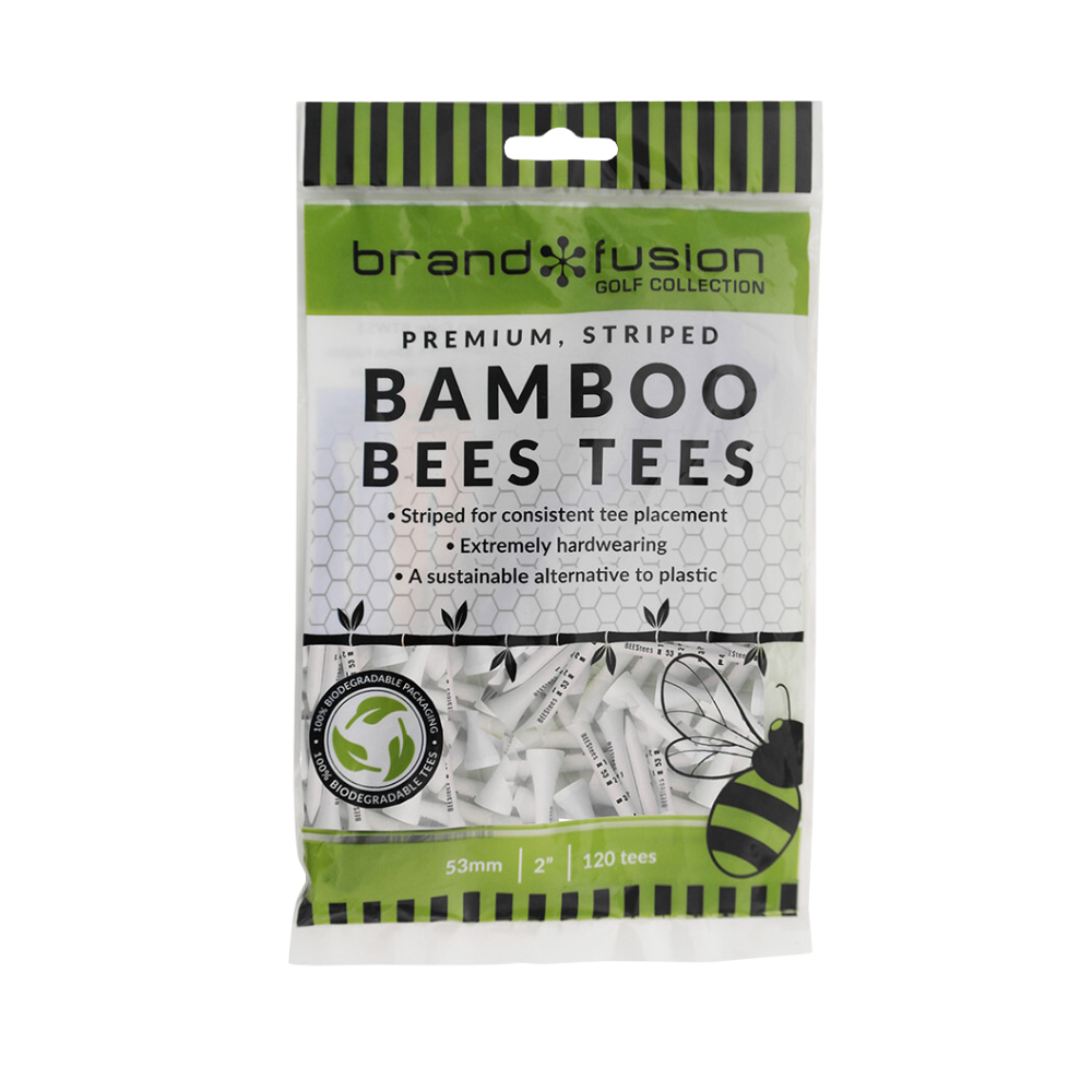 The stripes on each tee are set the same distance from the top of the tee, and at equal distances down the tee. Each stripe is also numbered, allowing for consistent tee placement in the turf.