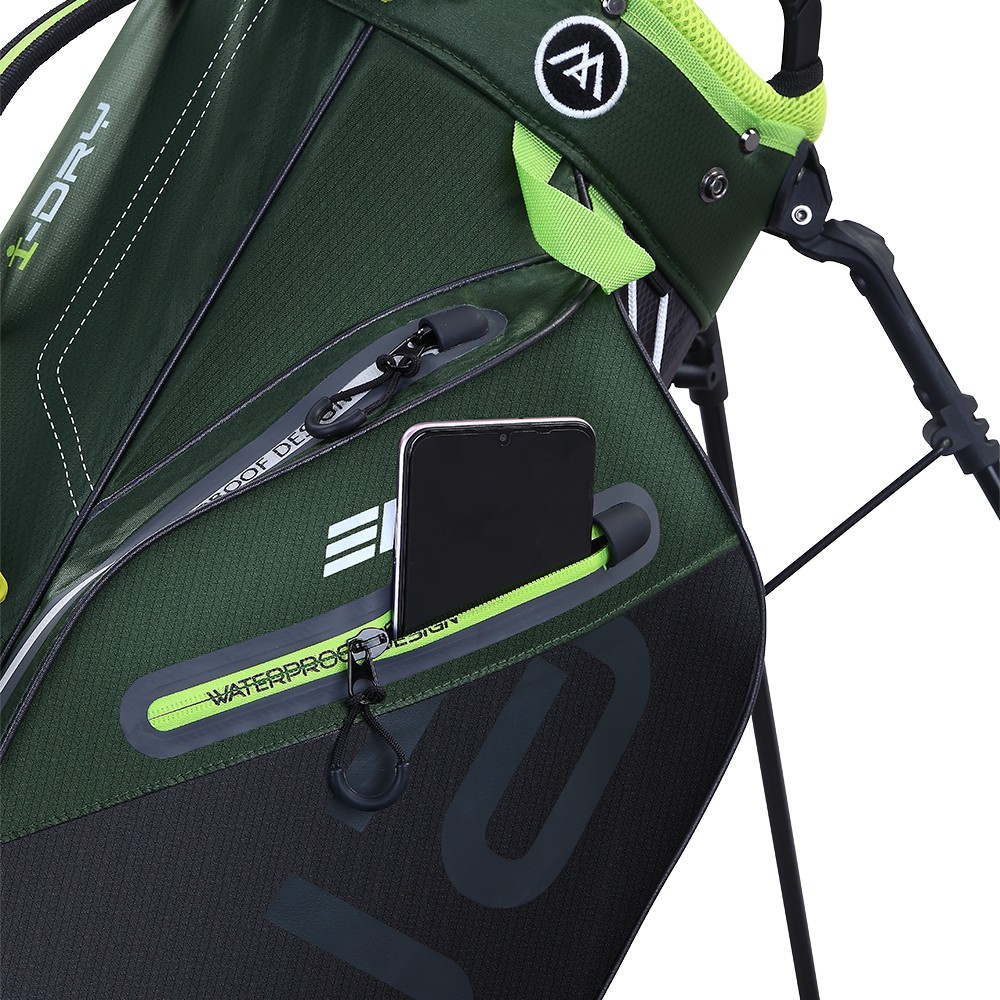 Thanks to the AQUA I-Dry system, you can use the bag in any weather without worrying about your equipment getting wet. Plus, you can enjoy having a cold drink with you anytime throughout your game with the extended cooler pocket that can hold up to two bottles at the ideal temperature. Additionally, you can make sure your watch, wallet, keys, smartphone, or rangefinder can safely ride along with you in the waterproof pocket.