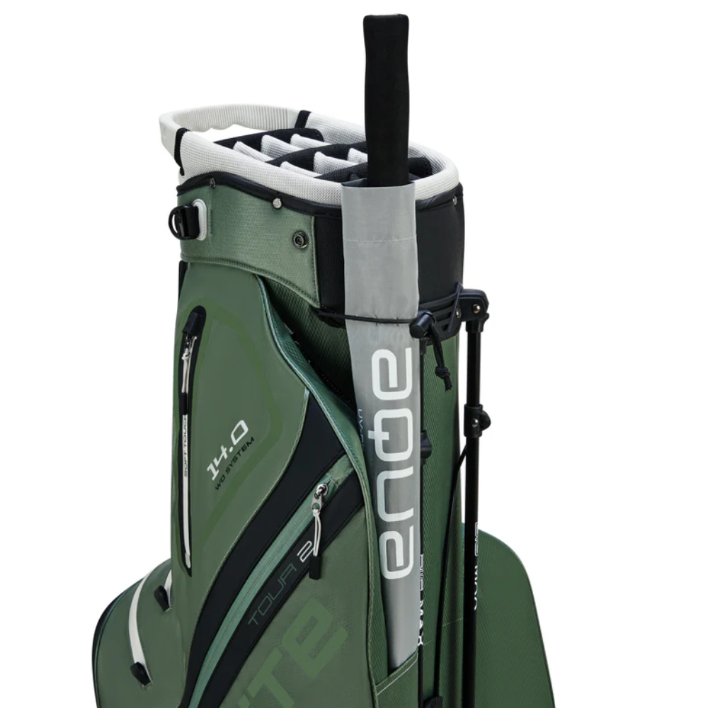 The Dri Lite Hybrid Tour 2 uses Big Max’s innovative hybrid system, offering a perfect fit with push carts through its dual-component floor. The lowered stand ensures the upper bag holder doesn’t interfere, while the detachable straps can be removed when you do not need them. Adaptability is built in.