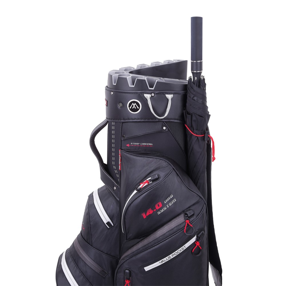 Not only does this bag impress with many features such as an umbrella holder and a glove and towel holder, but also offers many spacious pockets to properly store all of your equipment. The pocket arrangement offers improved organisation with 4 waterproof valuables pockets (watch, wallet, keys, smartphone or rangefinder).