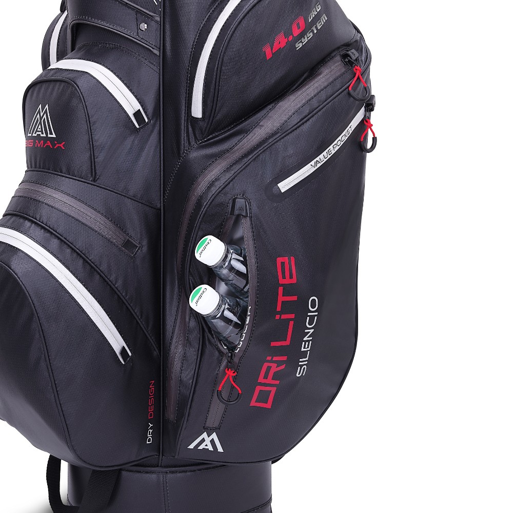 The Big Max Silencio 2 cart bag combines water resistant material with waterproof zippers, keeping your equipment dry in showery weather. The protective coating allows easier cleaning of the bags from dust and dirt.