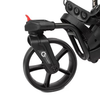 The IQ 360 is our only trolley with a 360 degree front wheel. Unlock the swivel caster for tight spaces and secure it for long straight stretches on the course.