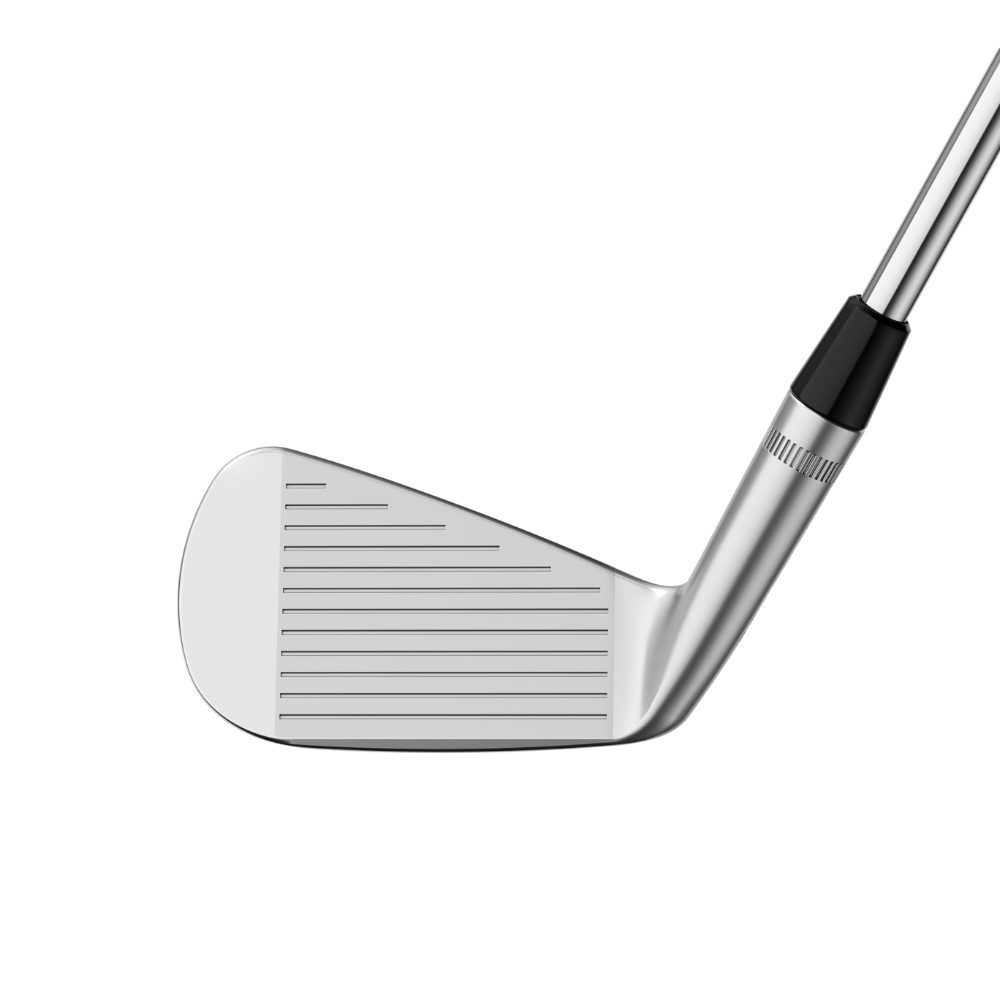 A progressive CG throughout the set improves trajectory control. The long irons feature a lower CG that promotes towering shots that land soft into greens while the short irons utilize a higher CG for a lower trajectory with more spin for added control.