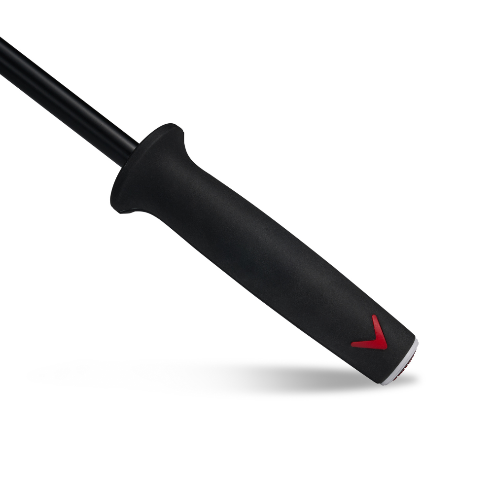 Tour caliber oversized performance umbrella with a lightweight fiberglass shaft, ventilation holes for wind pass-through and non-slip ergonomic handle.