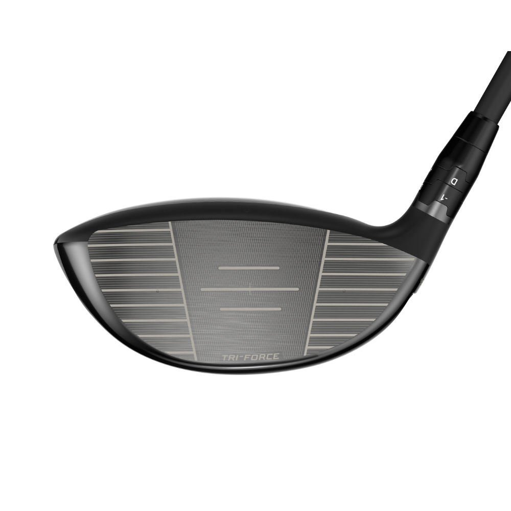 Delivers unreal speed and distance—even on off-centre hits—through the revolutionary Tri-Force Face. This fully integrated speed system layers ultra-thin, high-strength Titanium, Poly Mesh, and Carbon Fiber in a configuration never before used in driver face design.