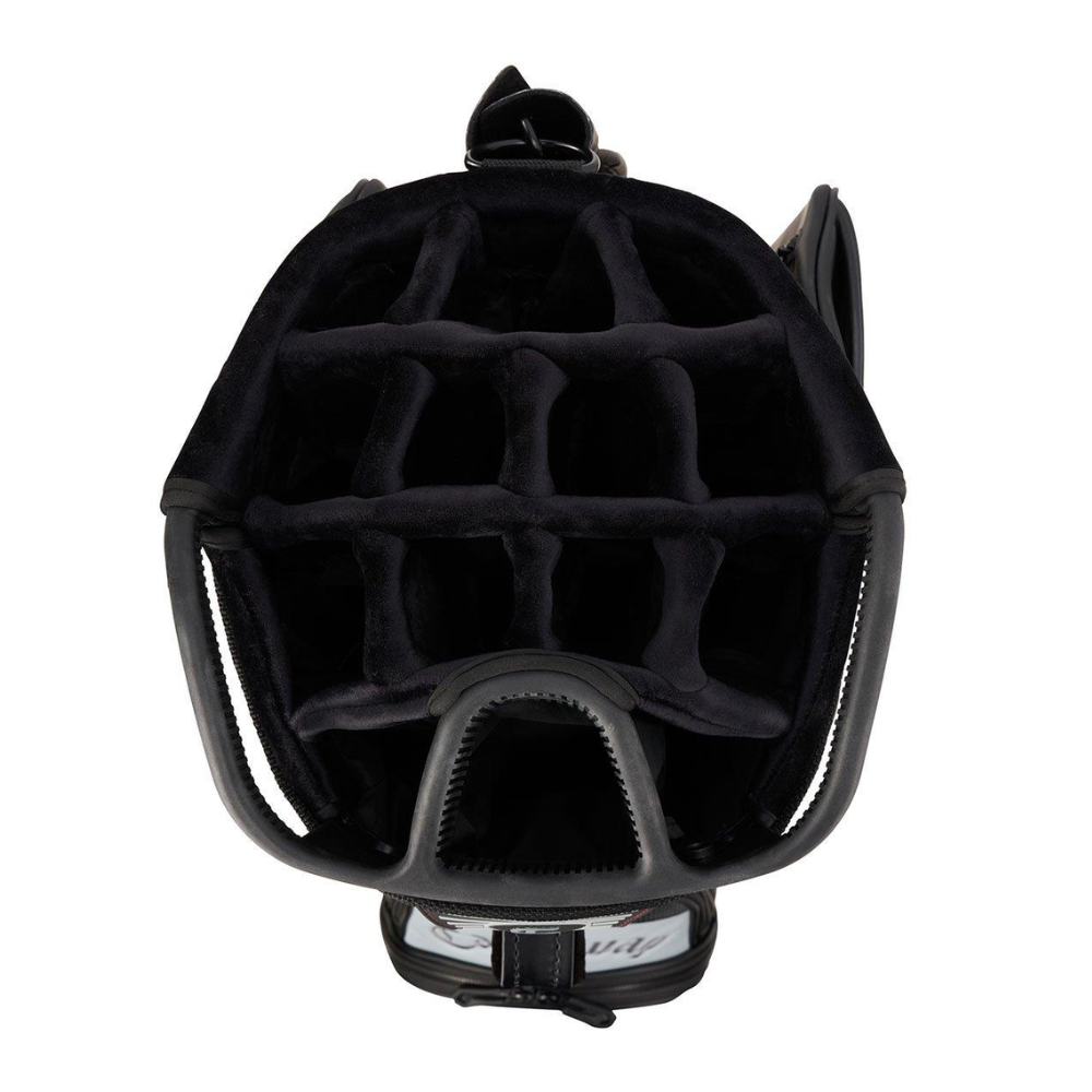 Designed specifically for trolleys and showcases the look and feel of our Tour staff bag. Features a 14-way top, e-trolley straps and our Perfect Balance Base for total stability, and 6 pockets for maximum organisation.