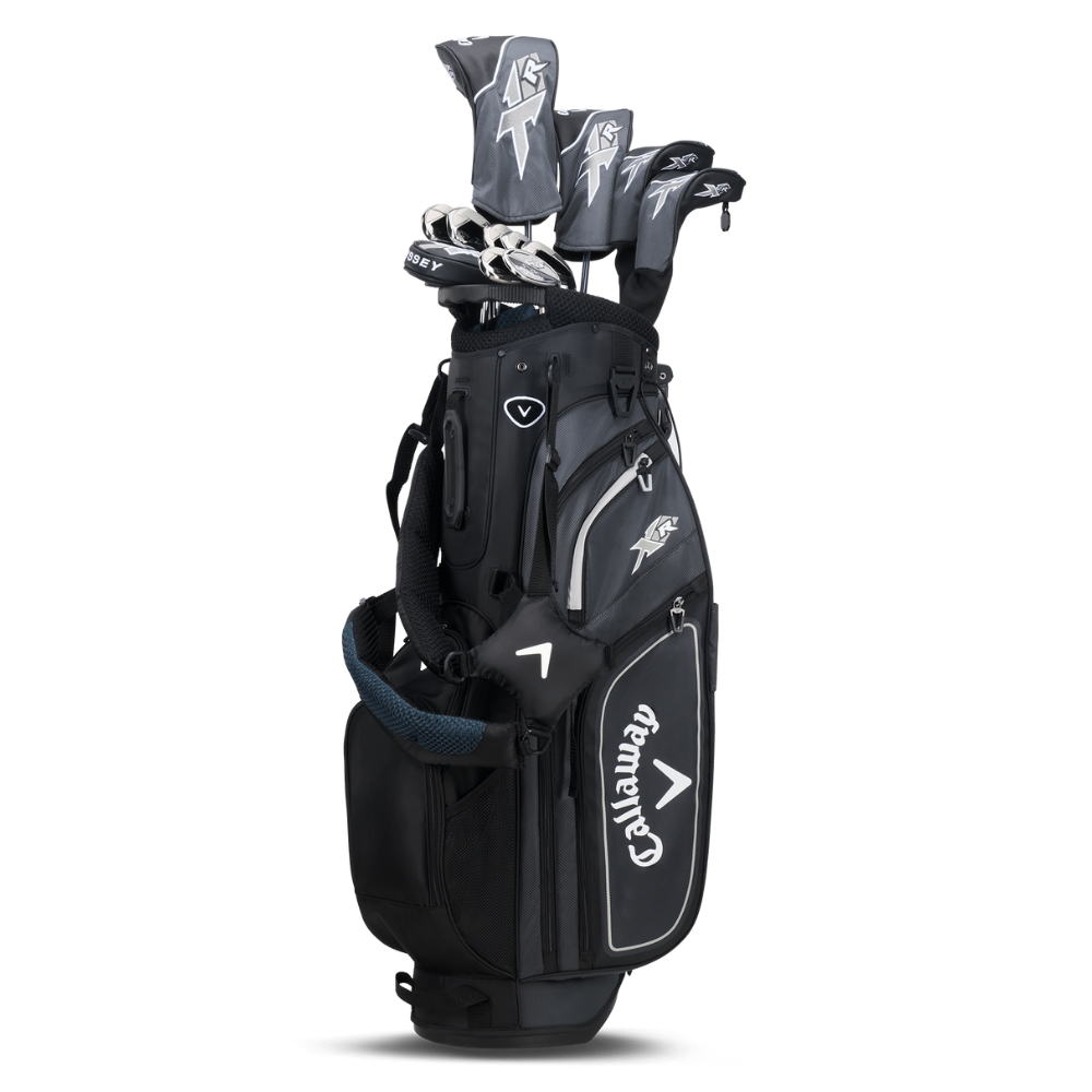 A premium package set from Callaway Golf, The XR features a high end driver, fairway and hybrid along with 8 easy to use irons and a putter. Matching headcovers on the woods and hybrid and a lightweight cart bag to fit them all in.