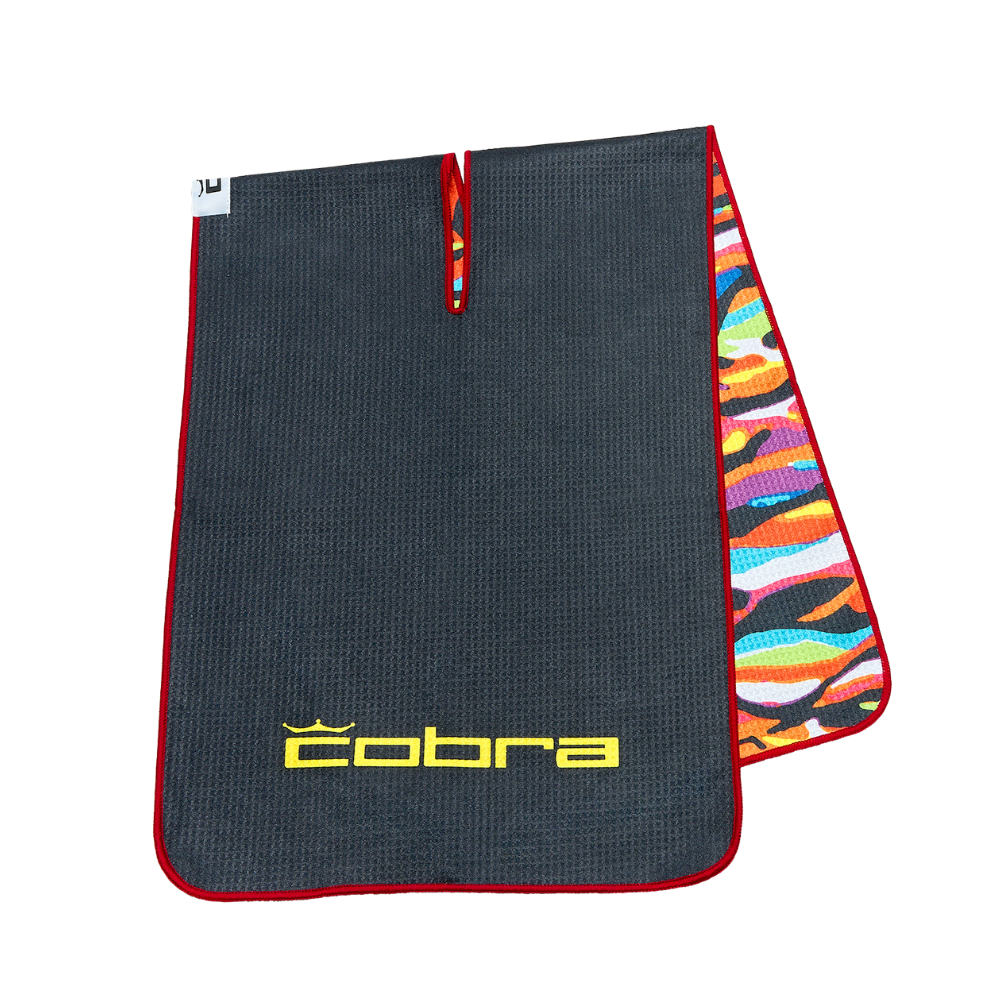 Introducing the Cobra Snakeskin Golf Towel, a high-performance accessory crafted from super-absorbent microfiber for optimal functionality on the course. Designed with tour-level performance in mind, this towel boasts a snakeskin pattern for a stylish touch. The center slit ensures easy hanging on your golf bag, allowing quick access during your game.