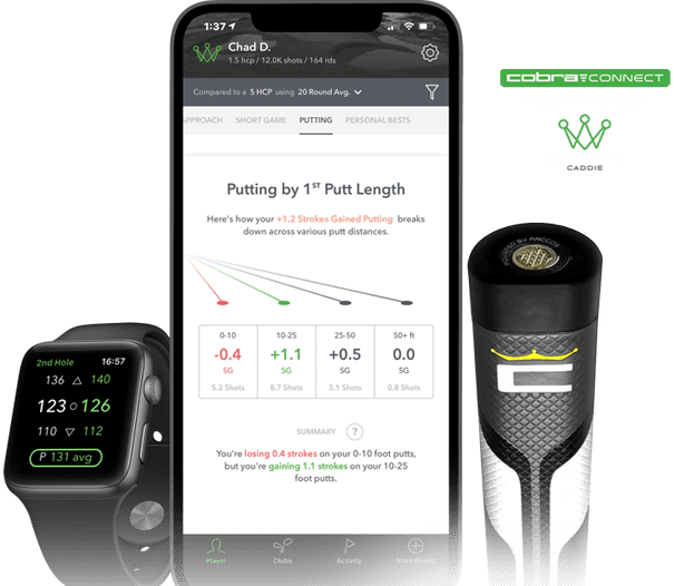 Each putter is equipped with a Cobra Connect Smart Grip and an embedded sensor that syncs with the Arccos Caddie app on your smart device. Download Arccos Caddie to pair your putter and start receiving in-depth, strokes gained analysis. With the purchase of every putter, you will receive a 90-day free trial to Arccos Caddie and the opportunity to redeem additional sensors for the rest of your clubs!