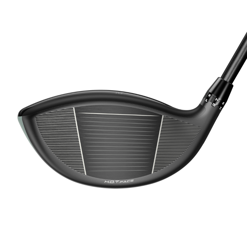 A forged face insert featuring H.O.T. Face Technology delivers optimized face flex for increased ball speed and distance—especially on shots struck away from centre.