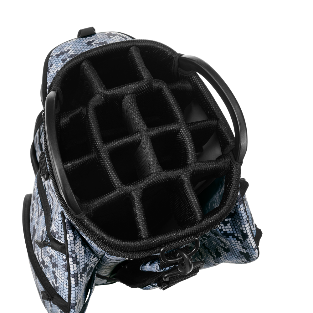 Designed for golfers who demand both functionality and style. Featuring an advanced pocket system, this bag includes an oversized cooler pocket to keep your favorite beverages chilled throughout your game. The spacious 14-way top with three full-length dividers ensures effortless club organization and accessibility, while the new magnetic pocket configuration provides dedicated spaces for all your gear. Enhanced with a Cool Flow padding structure, the bag delivers superior comfort during transport, even on long days. With a net weight of 2.84kg (6.26lbs) and a durable 100% polyester construction, this golf bag combines innovative design with practical features, making it the perfect companion for any golfer.