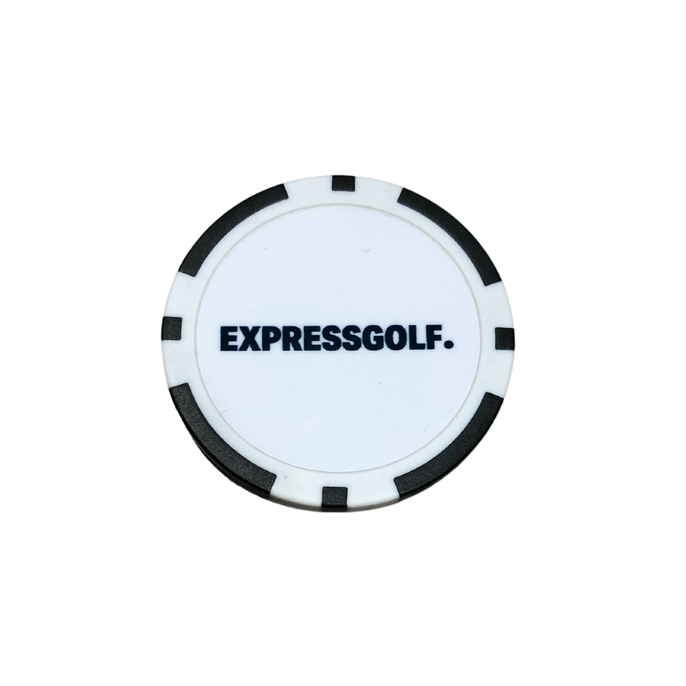 A stylish 40mm Poker Chip made from plastic with a resin dome finish and laminate on reverse, featuring the Express Golf and EG logo.