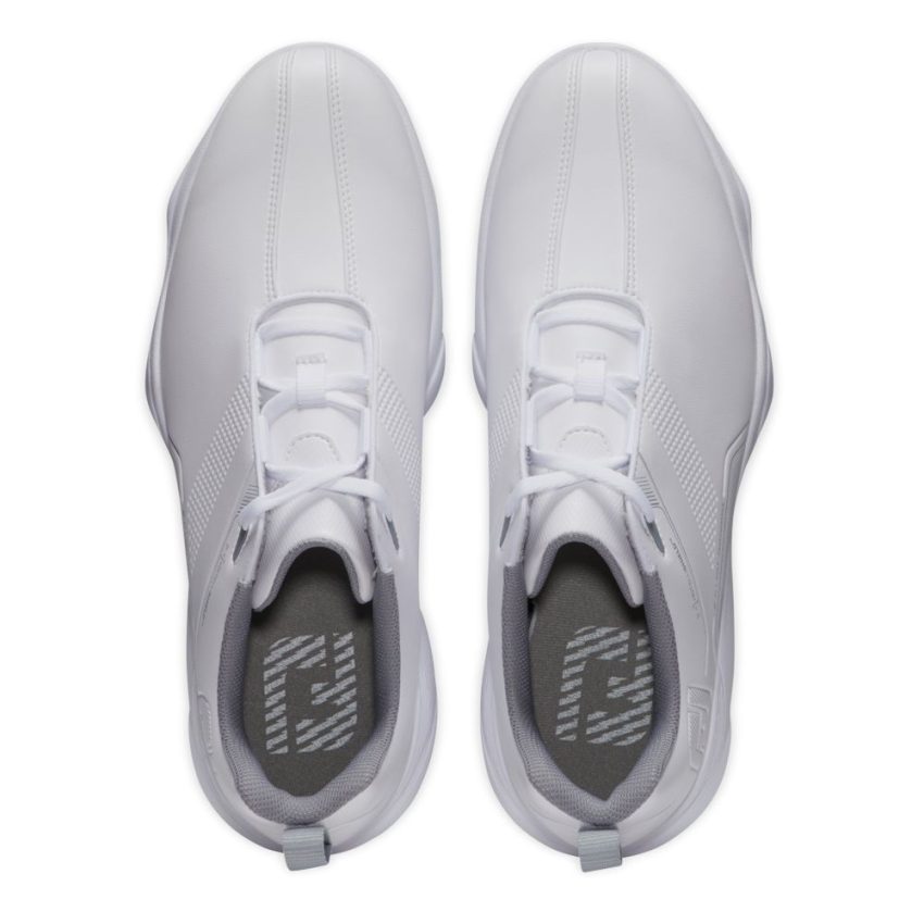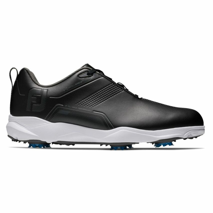 FJ eComfort waterproof golf shoes, A Waterproof, easy care synthetic uppers provide a comfortable fit and added durability. A full rounded toe character with a standard fit across the forefoot and instep. A toe spring and a slightly narrow heel completes the athletic profile.