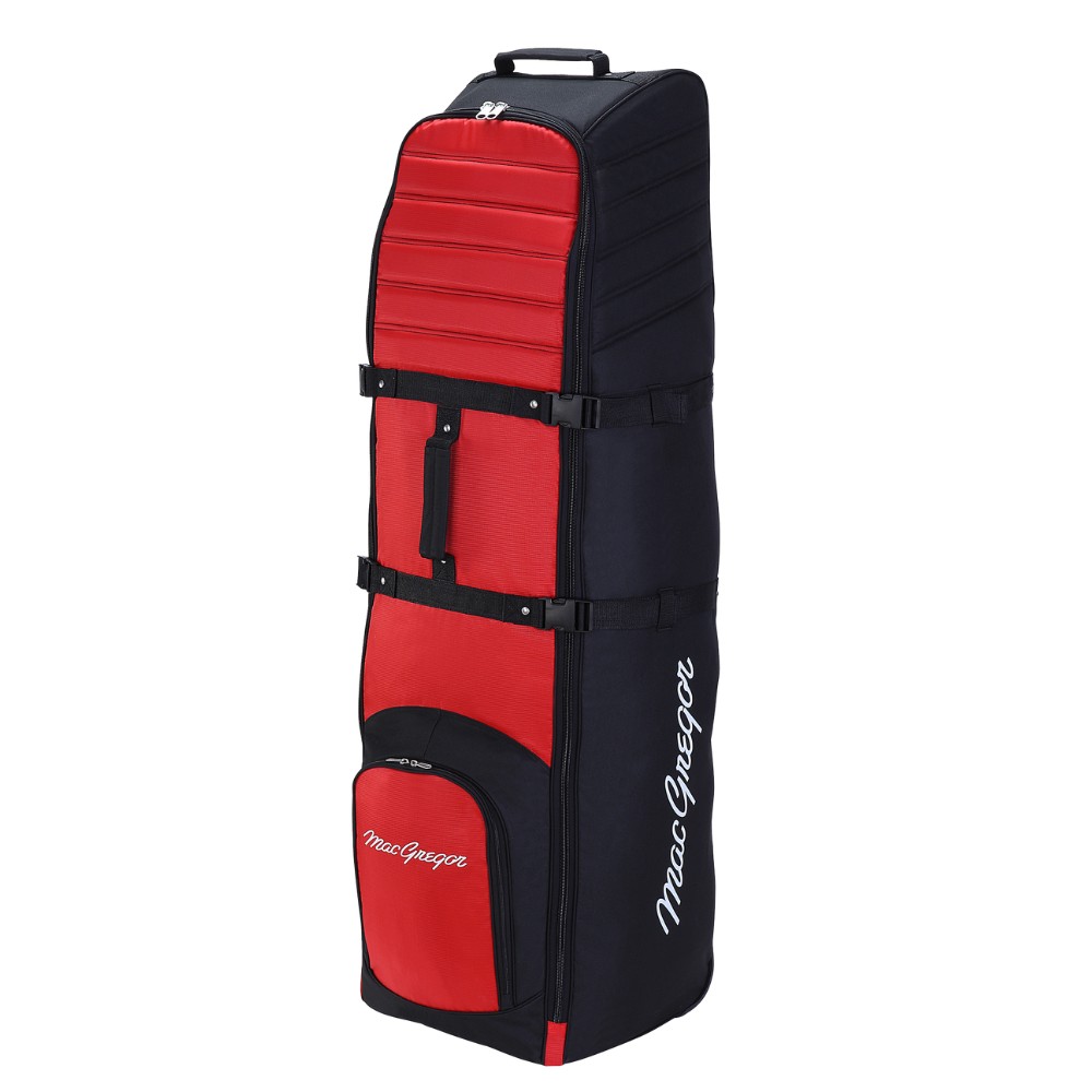 Macgregor wheeled travel bag is made from heavy duty canvas materials and padded top for extra protection during travel. Inline skates make transporting the bag easy whilst 2 base bar runners protect the travel cover body. Full round zip and large front storage pocket for you golfing extras. Slightly larger bag than the standard Macgregor Vip travel bag.