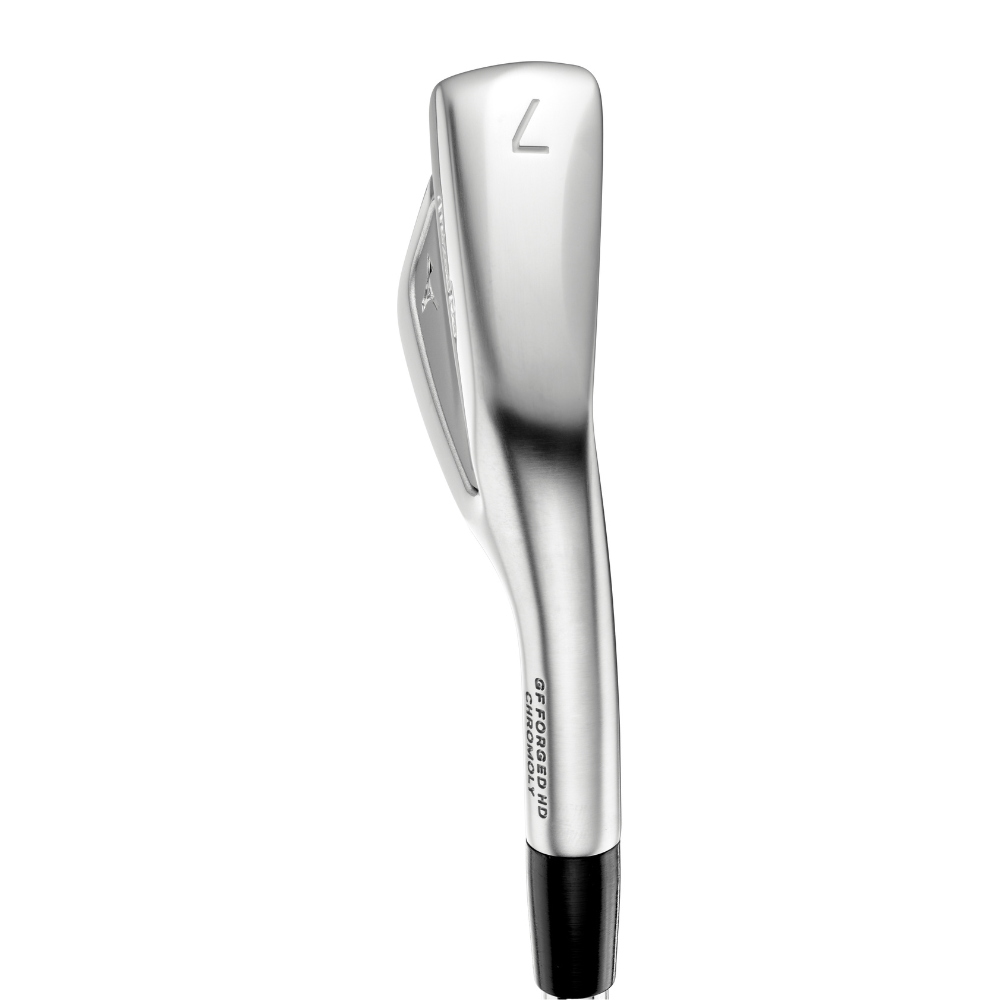 4 – 7 iron: Grain Flow forged HD 4135+ Chromoly face and neck. 431 Stainless Steel back part. Hollow-body design with tungsten weighting