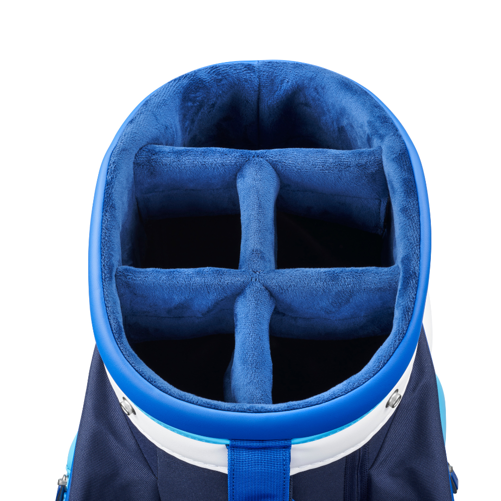 Showcasing Mizuno’s signature two-tone blue and premium tour finish, this cart-friendly bag is designed for serious golfers. The open, flexible 5-way top cuff—favored by tour players and caddies—ensures easy club access, while five versatile pockets provide ample storage. Complete with a zip-off panel for custom embroidery, this bag delivers both style and functionality on the course.