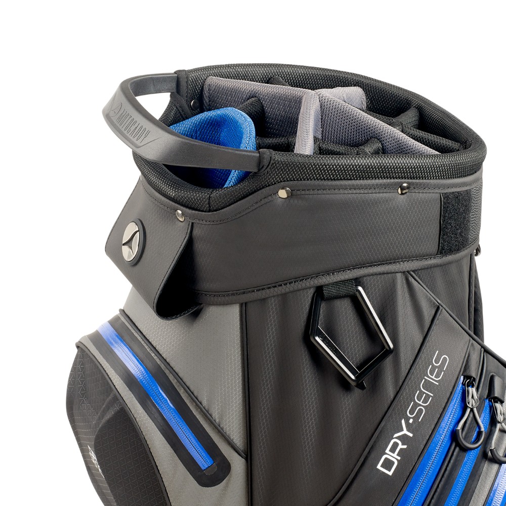 The latest additions to the acclaimed Motocaddy Dry-Series range boast super-lightweight and waterproof qualities, thanks to the durable TPU Nylon fabric, thermo-sealed zips, and heat-welded seams. These bags feature nine generously sized pockets, 14 full-length dividers, and easy-open Japanese YKK zips for smooth, snag-free access. Enhancements include new thermoform panels for added style, an umbrella sleeve, Velcro glove patch, towel hook, pen holder, and a scorecard pouch. The bags also come with easy-access carry handles and an anti-twist base, offering EASILOCK® compatibility for effortless transportation on and off the course.