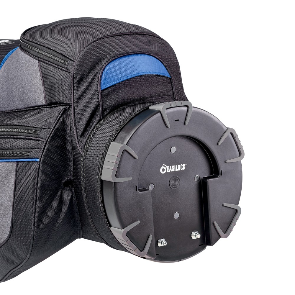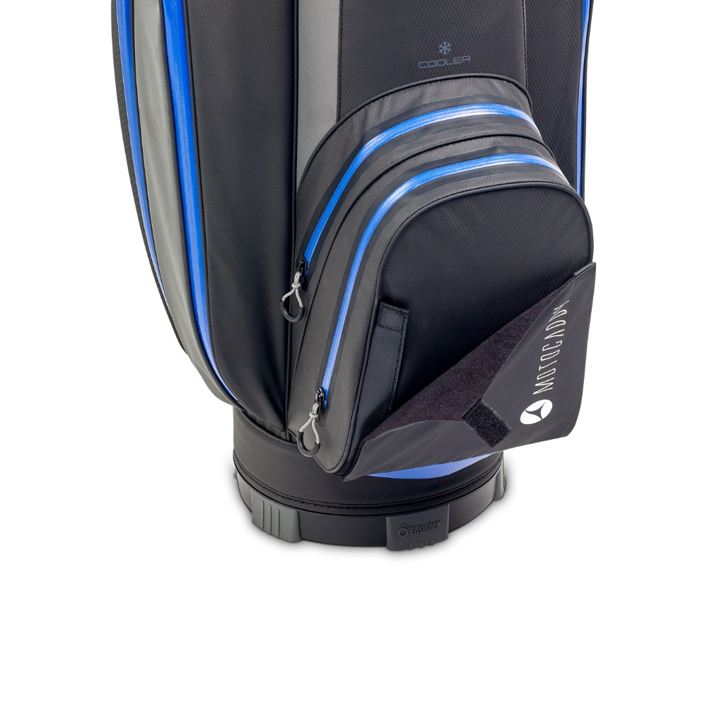 The exclusive EASILOCK® system, a hallmark of all Motocaddy trolleys and bags, secures the bag onto the trolley, eliminating the need for a lower bag strap. The two slots on the trolley’s lower bag support align precisely with two removable pins on the bag’s base, ensuring golfers can secure their bag with unparalleled ease.