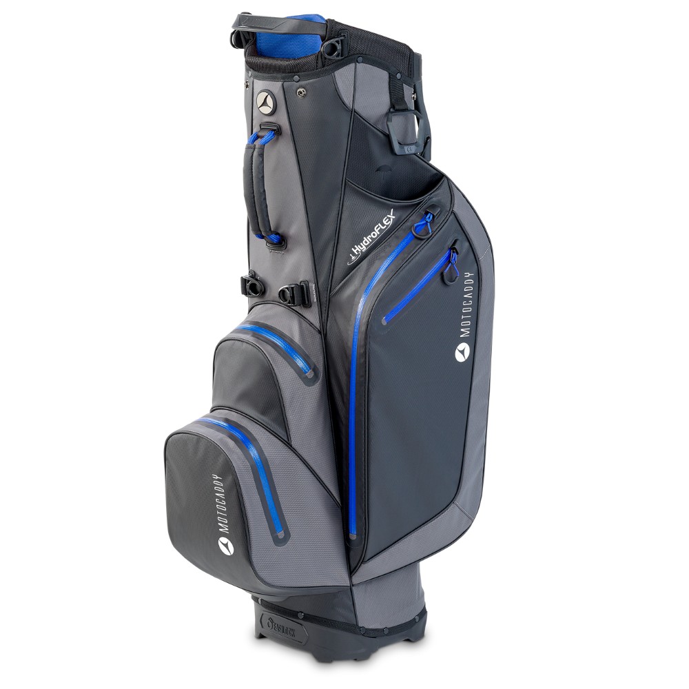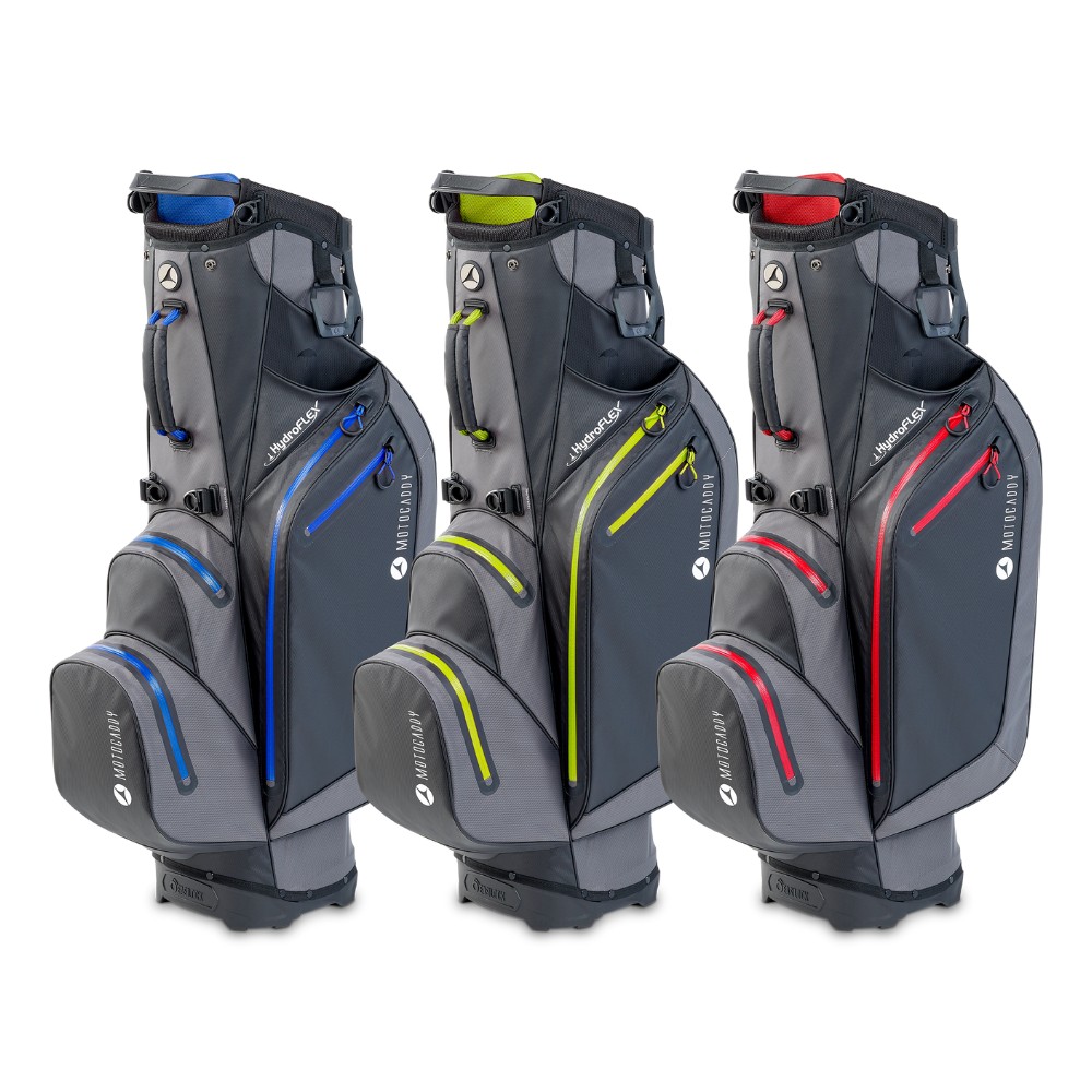 A new 100% waterproof stand bag from Motocaddy, the new HydroFLEX is a super lightweight waterproof stand bag and will fit onto any Motocaddy trolley offering flexibility with quick release straps, internal umbrella sleeve and lock out legs.