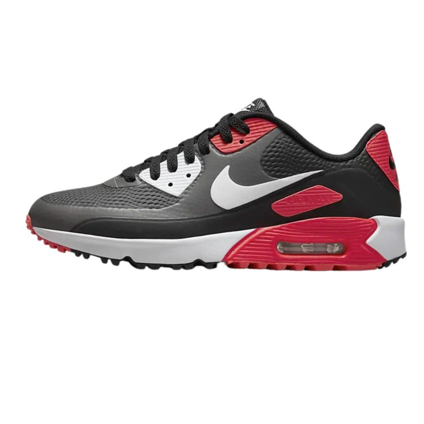 Nike Air Max 90G – a style icon made for the golf course. Nike have fused the heritage vibes of the iconic original Nike Air Max 90 with modern updates tailored to golf. Enjoy heritage look with classic fused overlays, additional eyestays and strategically placed mesh. Plus, stay dry during your round with a thin, flexible overlay that helps keep out water and makes it easy to clean.