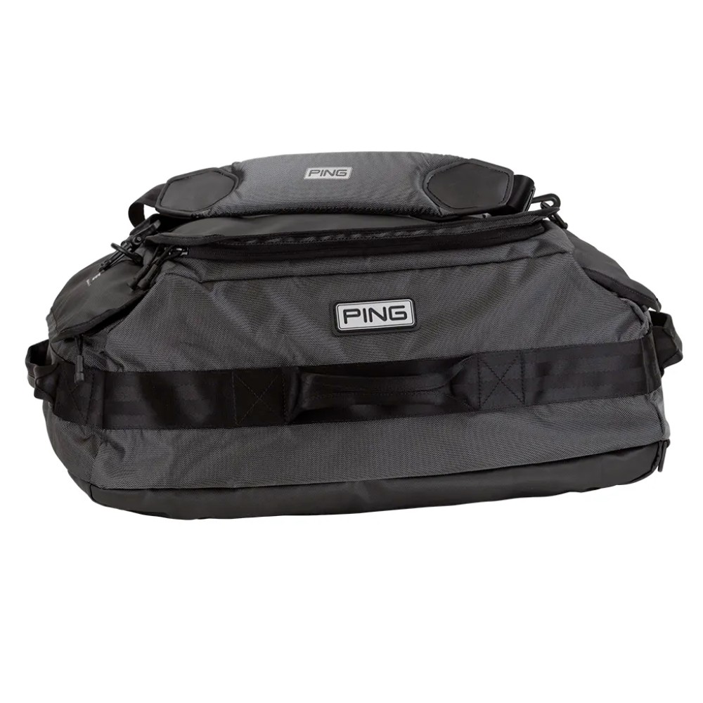 Designed for both function and fashion, this golf duffel bag offers the perfect balance of utility and sleek design. The roomy main compartment provides ample space for your gear, complemented by three external zippered pockets to keep essentials neatly organized. A PU-coated bottom adds durability and stability for everyday use. Finished in a sophisticated heather grey textured fabric, it features an interchangeable strap system, allowing you to carry it comfortably by hand or over the shoulder.