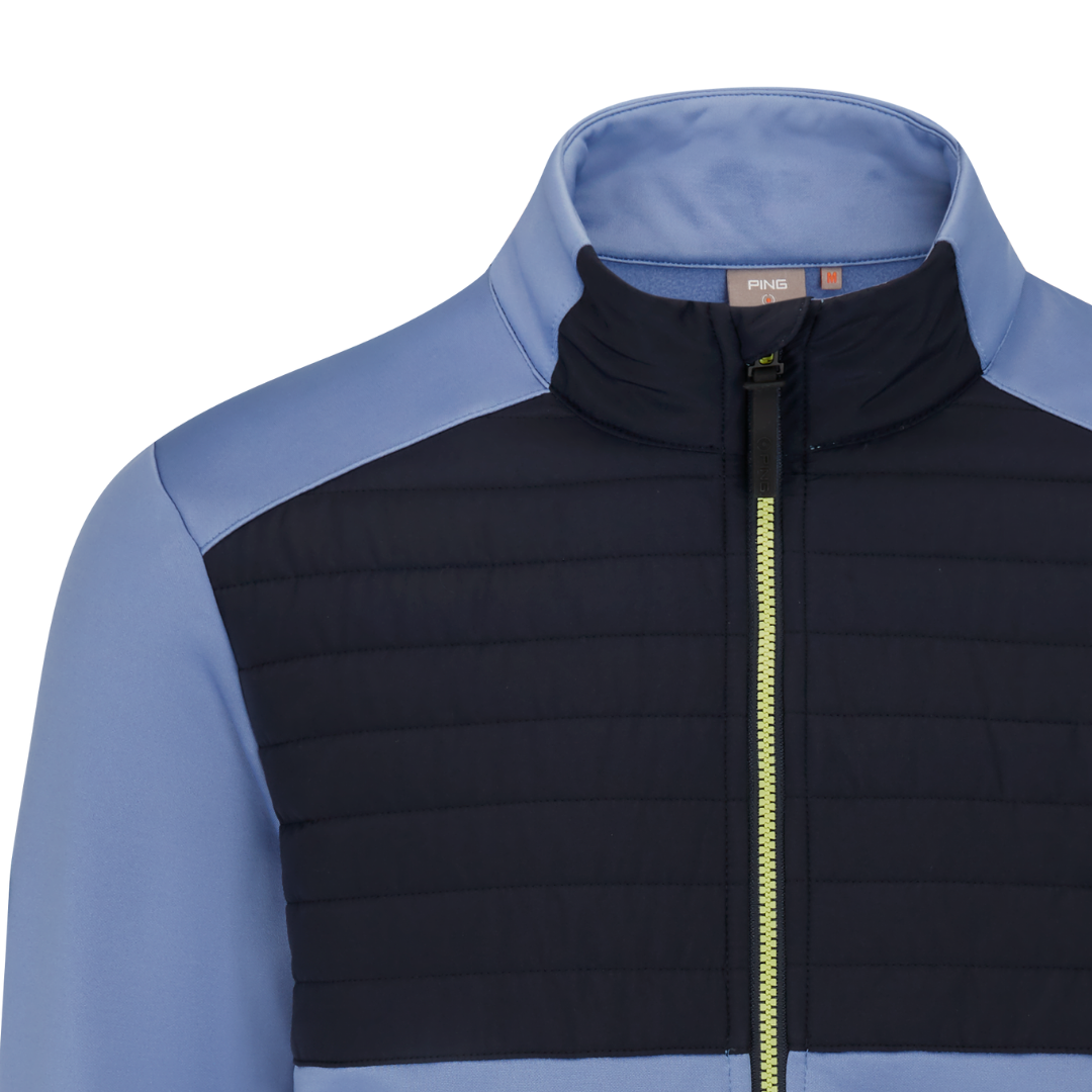 Introducing the Firth Men’s Hybrid Fleece Jacket in Rock/Black, crafted for ultimate warmth, comfort, and style. The jacket boasts a quilted insulated upper front body filled with Sorona® Aura, a lightweight and breathable, partially plant-based insulation. The stretch-fleece material provides excellent flexibility and freedom of movement, while stretch binding at the hem and cuffs ensures a secure fit. With a water-resistant finish for protection against light rain and two front zip pockets with brushed lining for added warmth, this jacket blends practicality with modern design. Finished with the PING Eye rubber badge on the sleeve and Eye Mark logo at the back neck, it’s the perfect fusion of performance and style.