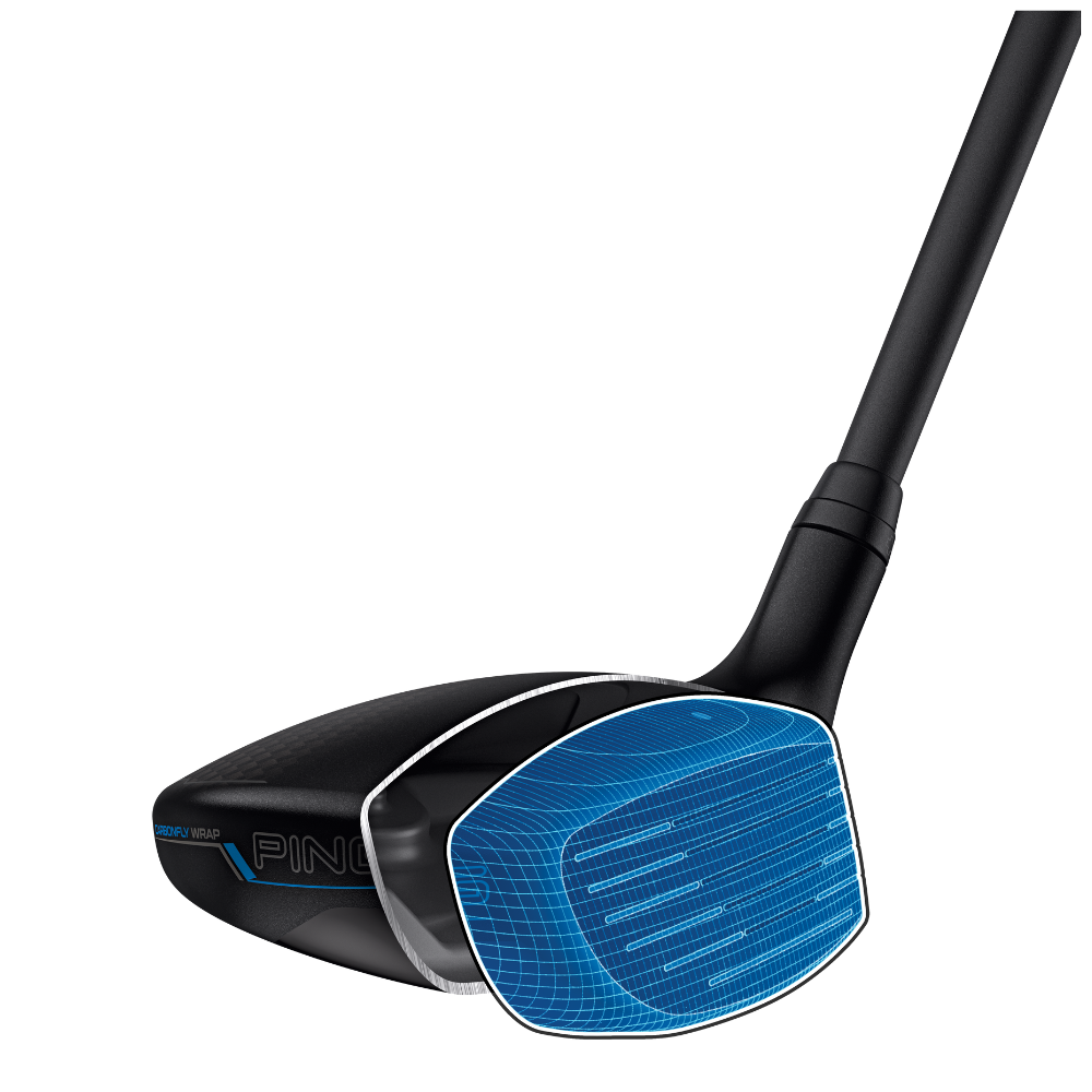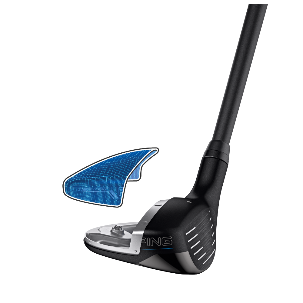 A shallower face (8%) helps golfers hit higher on the face, which in turn helps them launch their hybrids higher. A thinner face (6%) and optimised face profile help increase ball speed in the middle of the face and control ball speed on off-centre strikes.