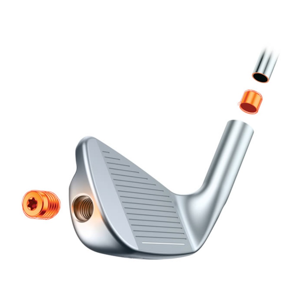 An aerospace-grade aluminium insert allows approximately 30 grams of material from the centre of the club to be redistributed to the perimeter in the form of toe and shaft tip weights, elevating the MOI to match that of the larger PING i210 iron.