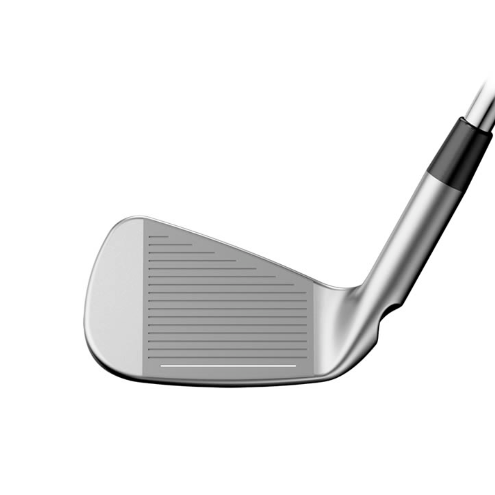 The precision-machined face has new MicroMax grooves for tighter spacing and a geometry that results in an average of four extra grooves to reduce fliers in the short irons and preserve spin in the long irons.