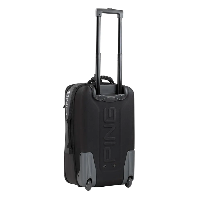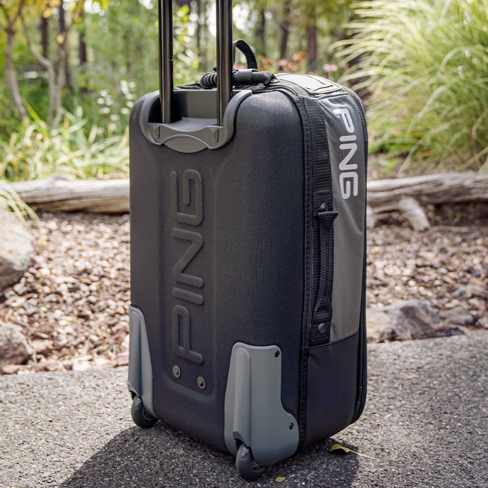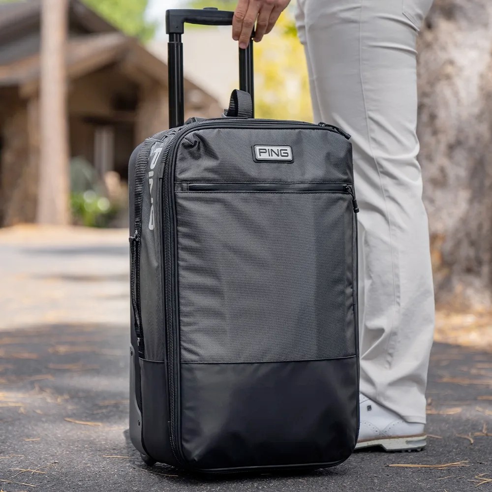 PING Rolling Duffel Bag: a specially designed piece of luggage for the discerning golfer. The tough and resilient exterior design ensures that your gear is protected no matter how far it has to travel. Meanwhile, its streamlined shape and smooth-rolling urethane wheels make maneuvering through airport corridors simple and effortless. We’ve even included a telescoping handle, so you don’t have to worry about bending over and struggling with your luggage. Plus, dual latching handles and straps make carrying your bag a breeze! Whether you’re heading off on a business trip or taking a weekend getaway, you can count on the PING Rolling Duffel Bag to get you there in style. Step into luxury with this reliable duffel bag; upgrade your golf game today!