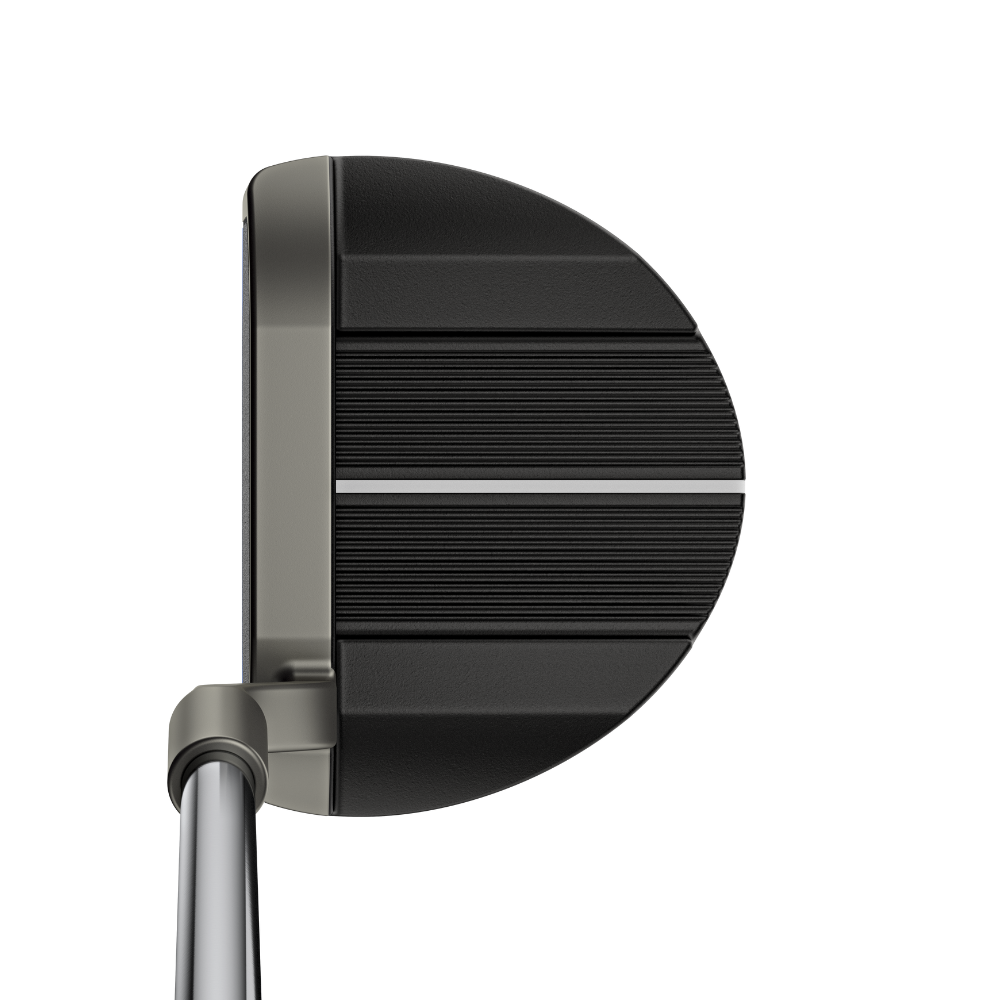 This high-MOI mallet is perimeter weighted and has a low centre of gravity for accuracy, helped by a ball-width back cavity and long alignment line that simplify aiming. Designed with a hosel to assist slight-arc players with getting putts started on line.