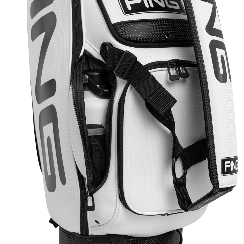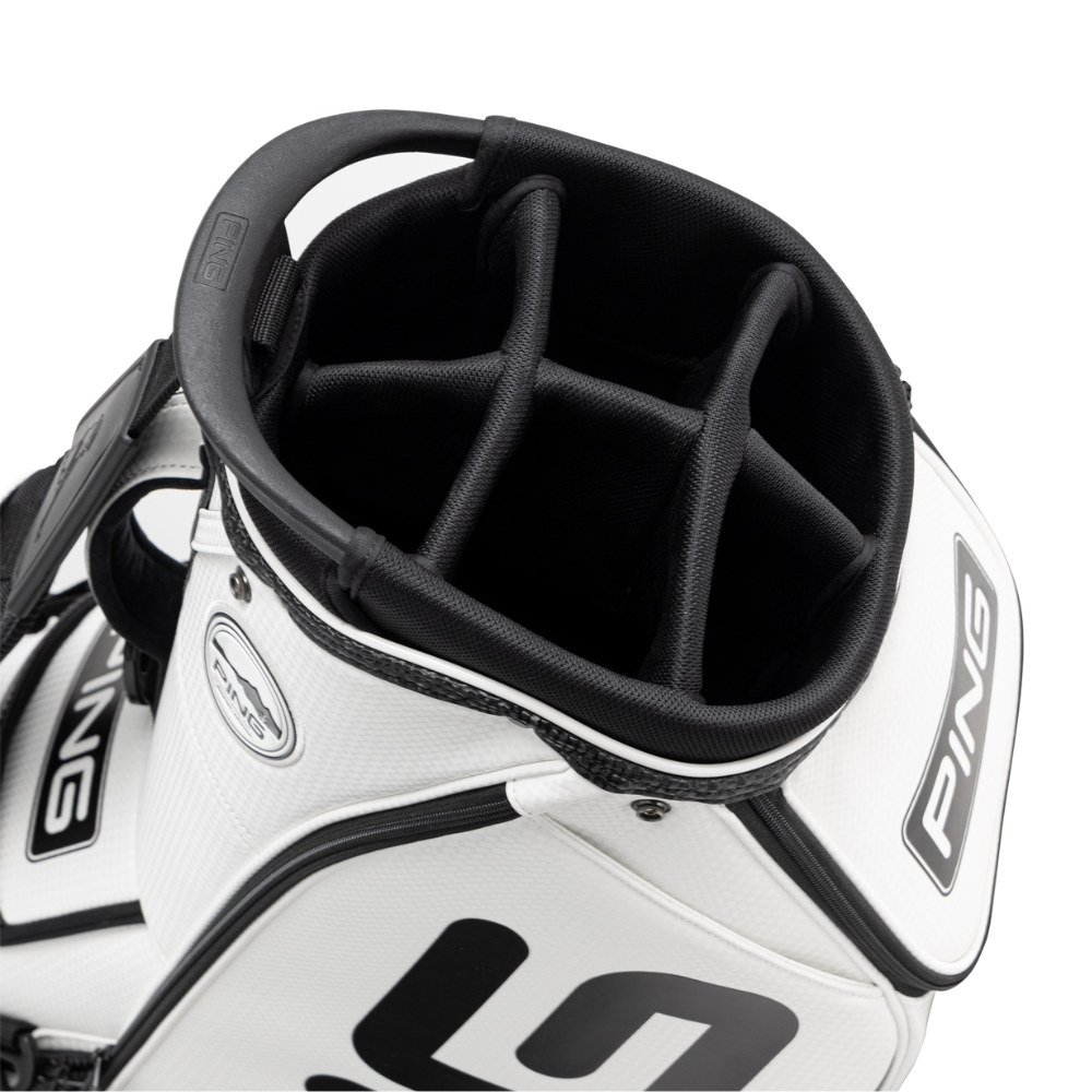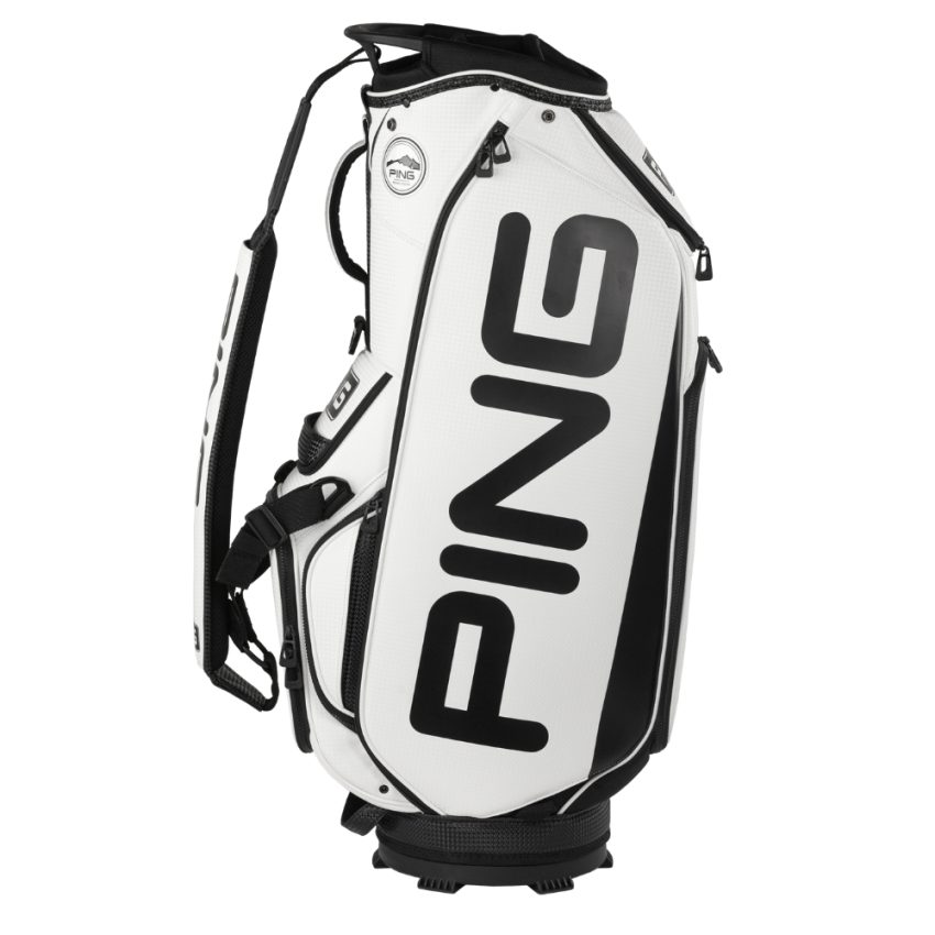 The PING Tour Staff bag is carried the world over by caddies of PING pros and it’s carted by golfers of all abilities who rely on its intelligent efficiency and quality-built, robust design. Clean lines and bold graphics convey the PING brand while nine large pockets, a six-way soft cover top and thickly cushioned shoulder strap place the emphasis on ease of use.