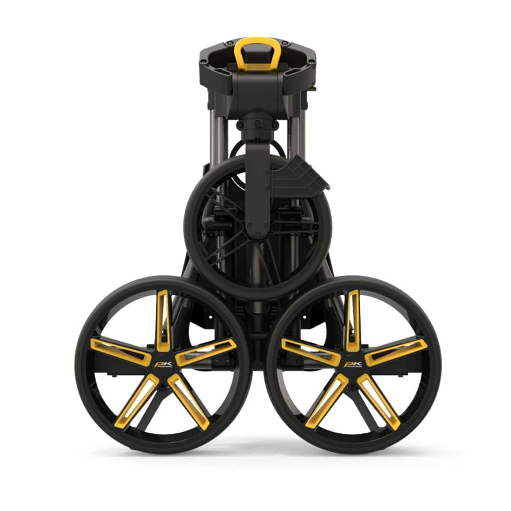 The innovative flat fold design provides unique options for storage and transportation of your golfing gear. The lightweight aluminium frame and large sport wheels allows you to glide over any terrain whilst the ergonomic handle adjusts to suit your height.