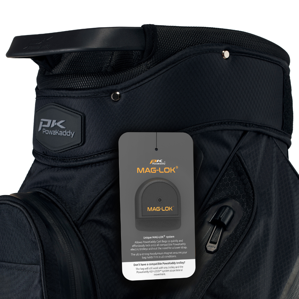 Patent pending MAG-LOK™ allows PowaKaddy Cart Bags to quickly and effortlessly lock onto all compatible PowaKaddy electric trolleys without the need for a lower strap. Ultra-Strong Neodymium Magnet ensures your bag holds firm in all conditions.