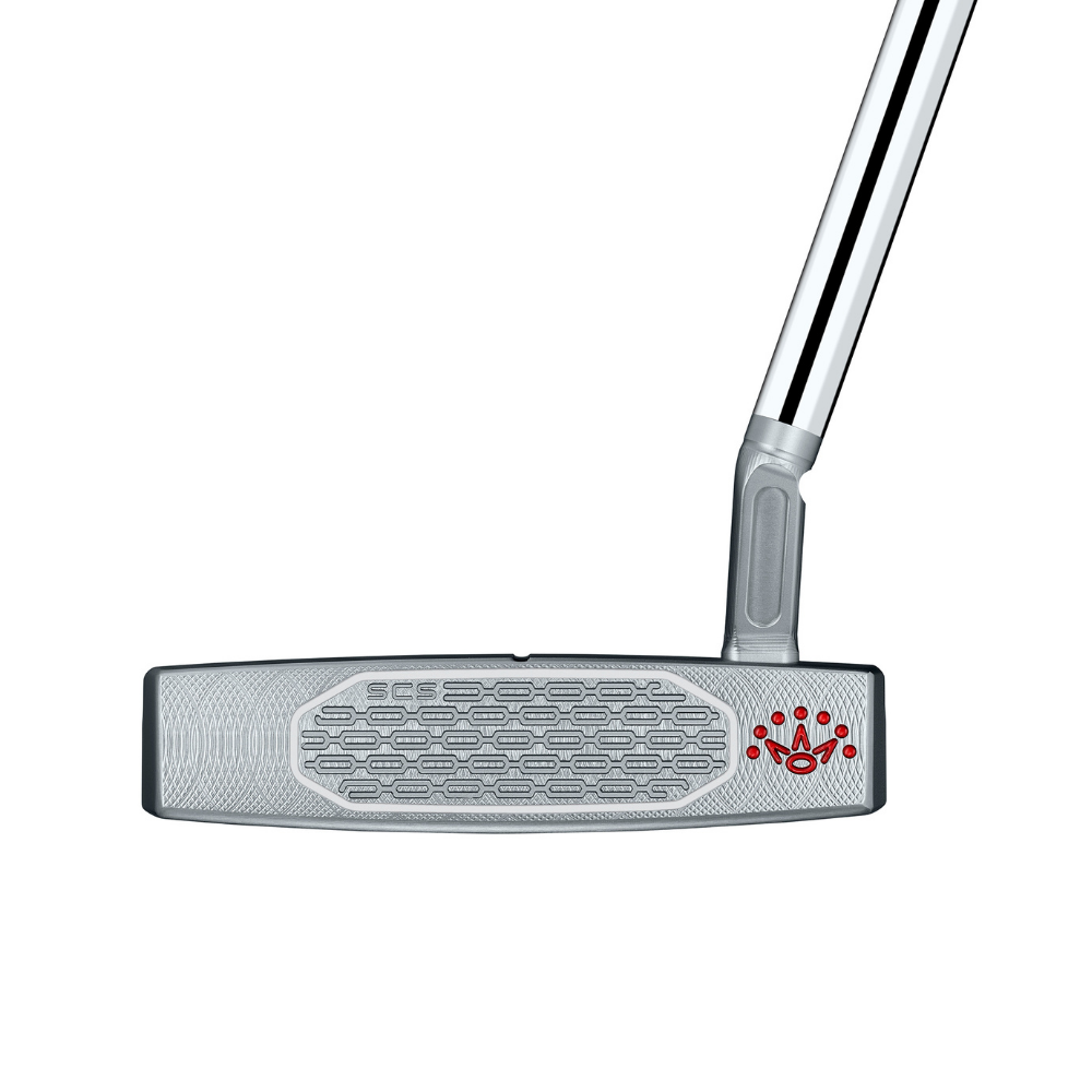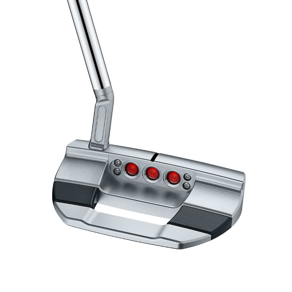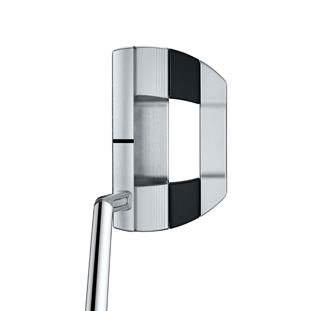 With a modern rounded design, this putter features a new black anodized aluminum heel-toe inlay, enhancing alignment and MOI for greater confidence at address. The Studio Carbon Steel (SCS) face insert and chain-link face milling technology ensure a soft, responsive feel with a consistent roll. A re-engineered sole draft angle guarantees the putter sits perfectly square at setup.