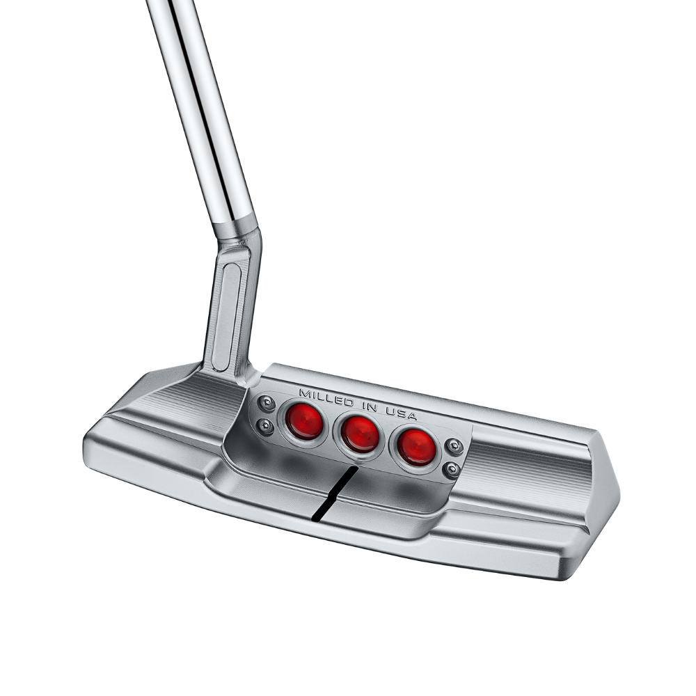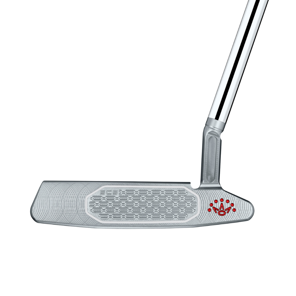 Precision-milled from 303 stainless steel, this high-performance blade putter features a new Studio Carbon Steel (SCS) face insert, advanced damping technology, and chain-link face milling, delivering a softer sound, improved feel, and exceptional feedback.