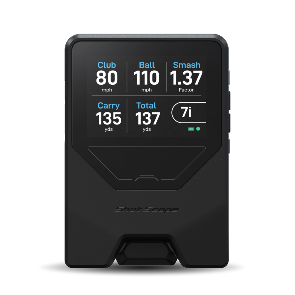 The Shot Scope LM1 Launch Monitor is a compact, portable training device built for golfers who want simple, accurate performance data wherever they practice. Designed for ease of use, the LM1 delivers five essential metrics to help sharpen your game: club speed, ball speed, smash factor, carry distance, and total distance.