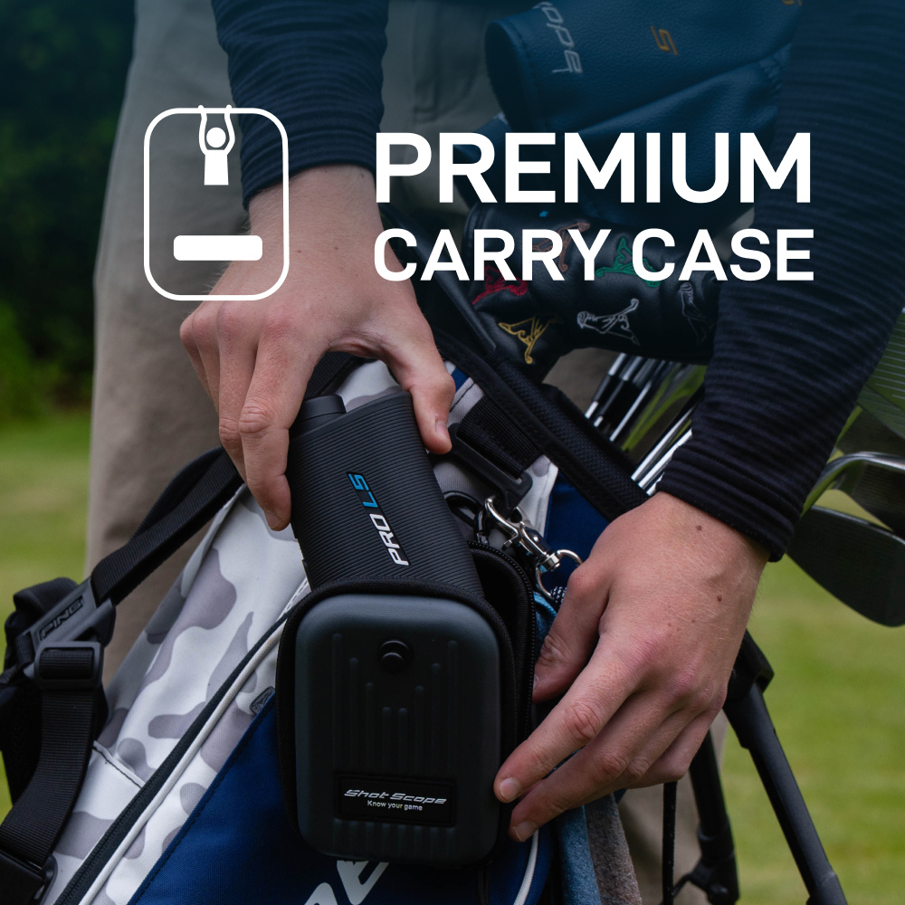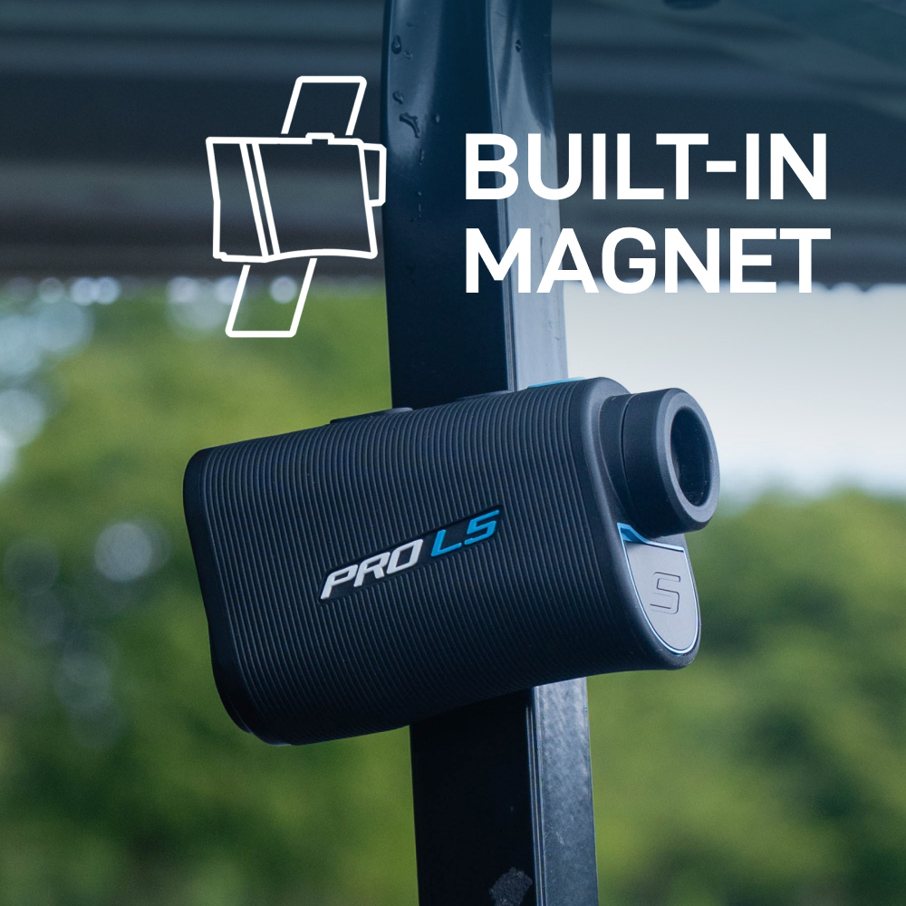 Built for convenience, the PRO L5 includes a strong integrated cart magnet, allowing you to securely mount the rangefinder on a golf cart frame. Prefer to carry it? Use the premium carry case, designed to attach directly to your golf bag for quick access.