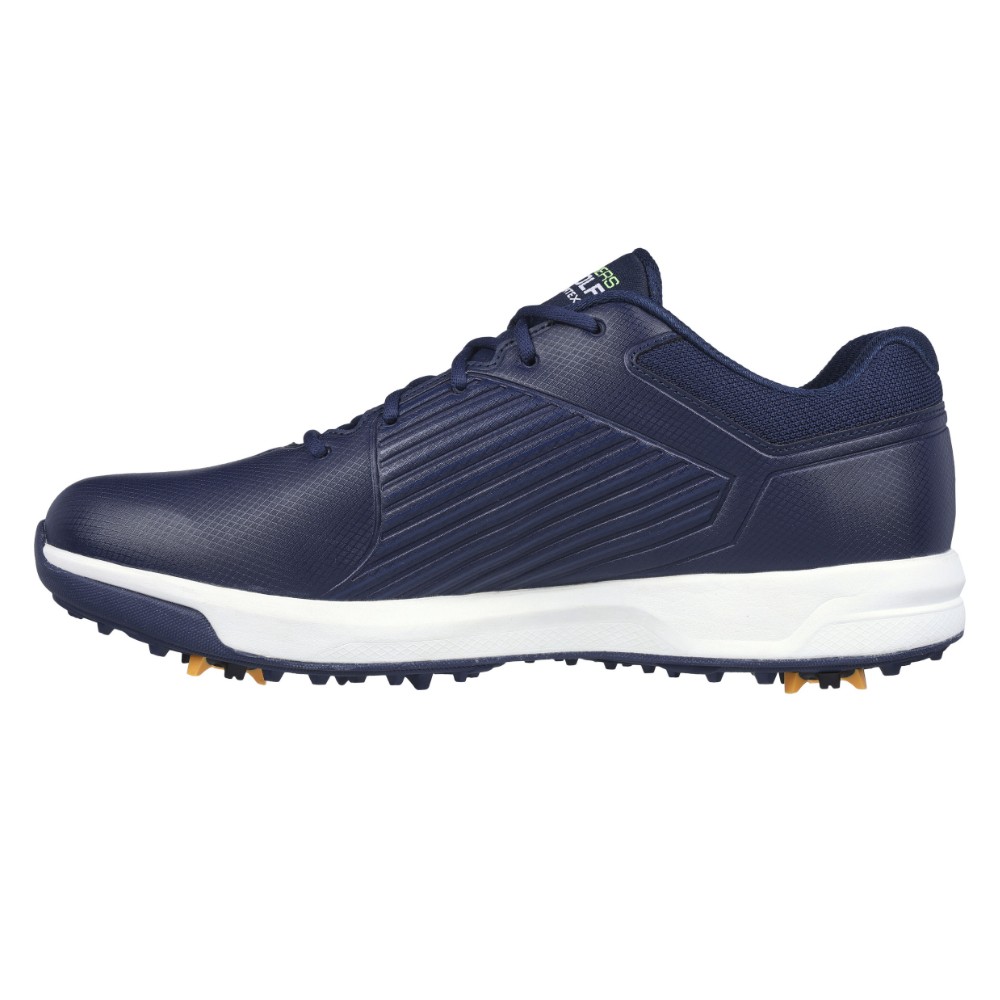 Skechers GO GOLF Elite Vortex golf shoes. This lace-up golf design features a waterproof synthetic upper, a removable Arch Fit comfort insole and replaceable Softspikes