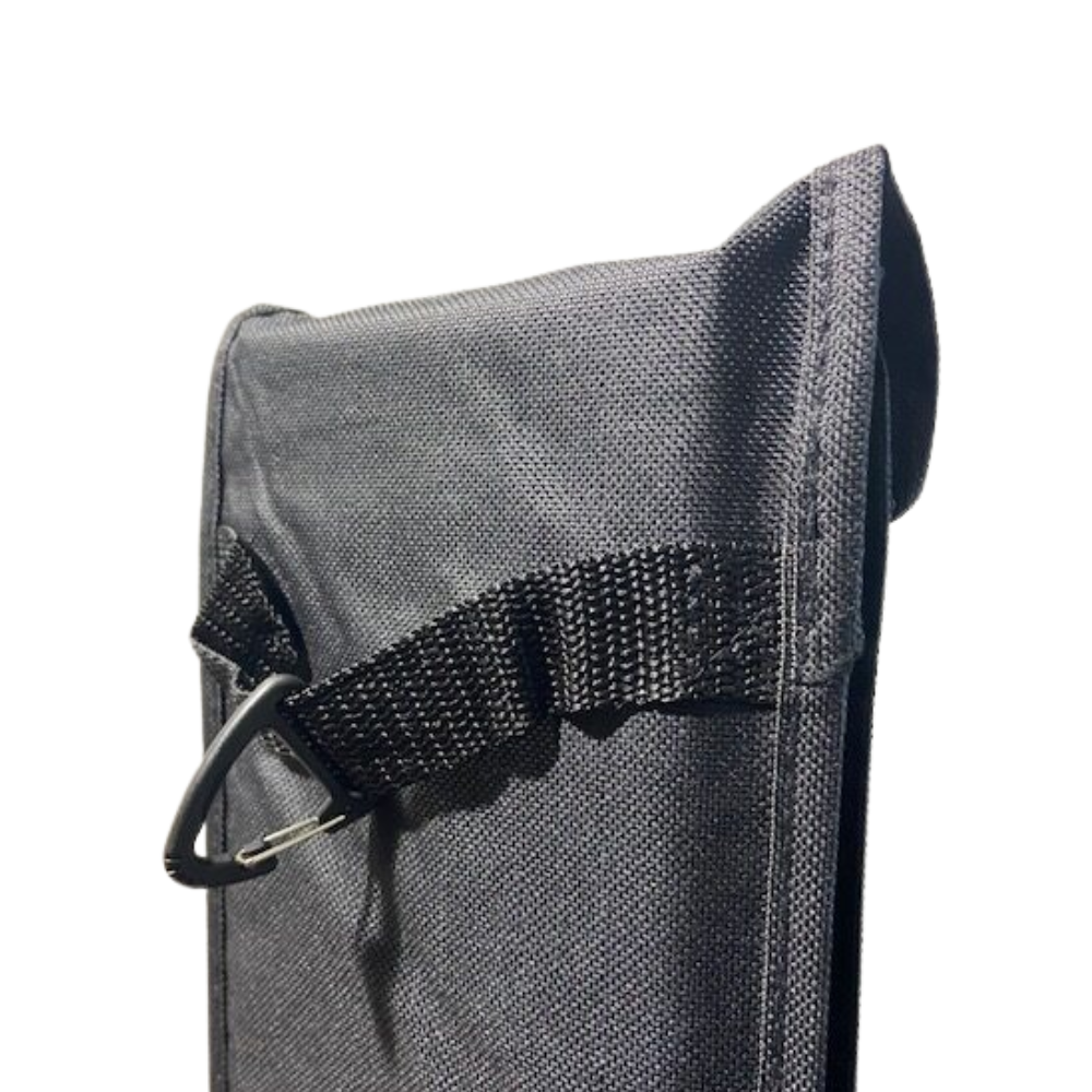 The carry bag comes with a built-in carabiner for direct attachment to your golf back with a plastic insert to help the mat slip in and out with ease, while protecting the rubber lined polyester sleeve.