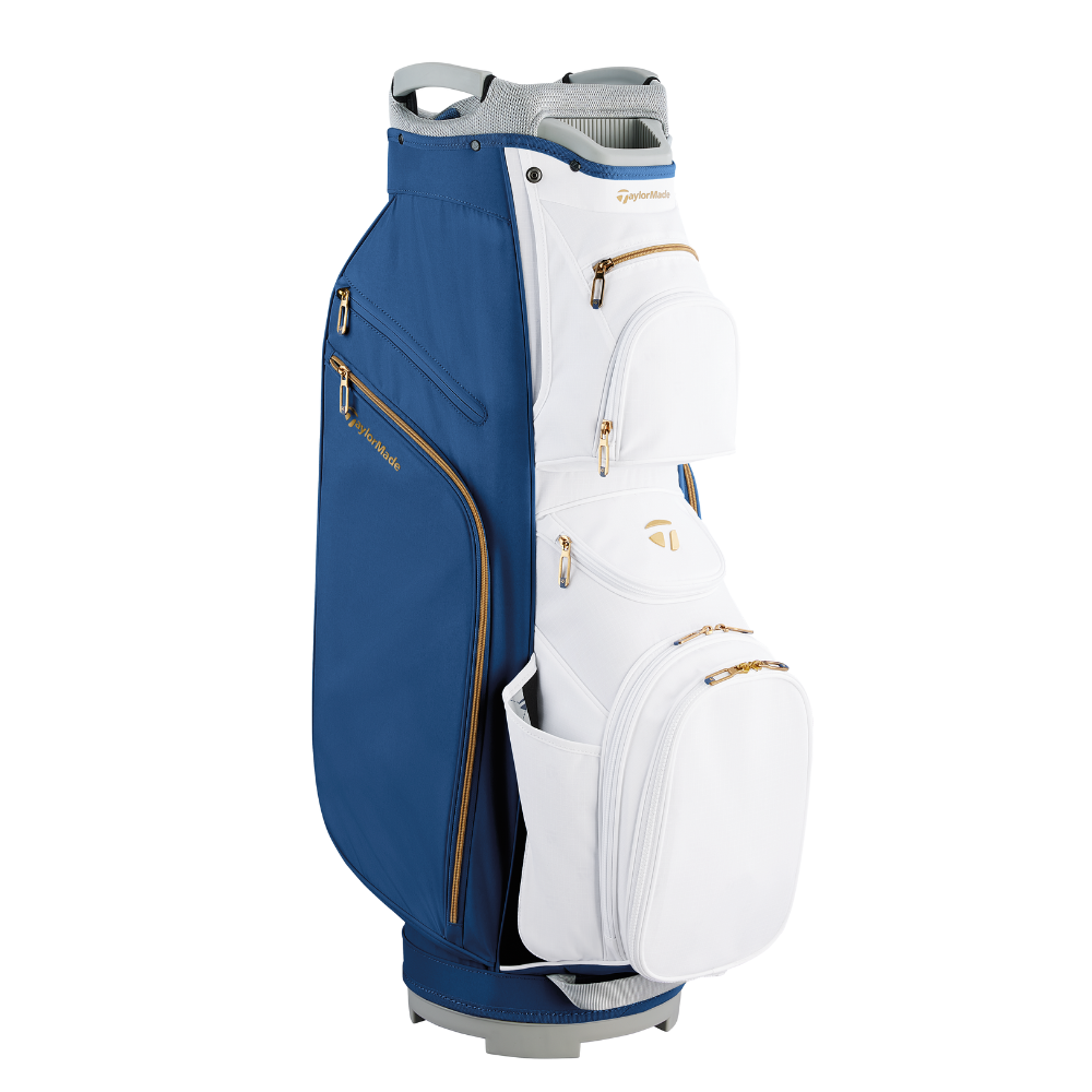 Colour choices include blue and white, and grey and white in the cart bag. The stand bag is available in blue and white.!