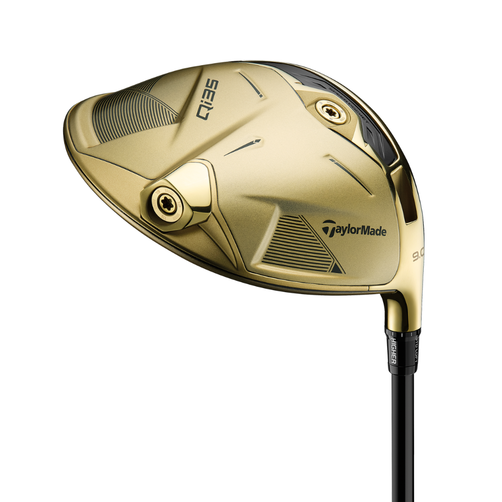 Qi35 and Qi35 Max Designer Series Gold drivers feature an elegant Matte Gold crown that’s outlined by thin striations that frame the ball definitively at address. The all-gold sole is accented by subtle black markings on the outer edges and a mirrored finish from the heel to toe under the leading edge
