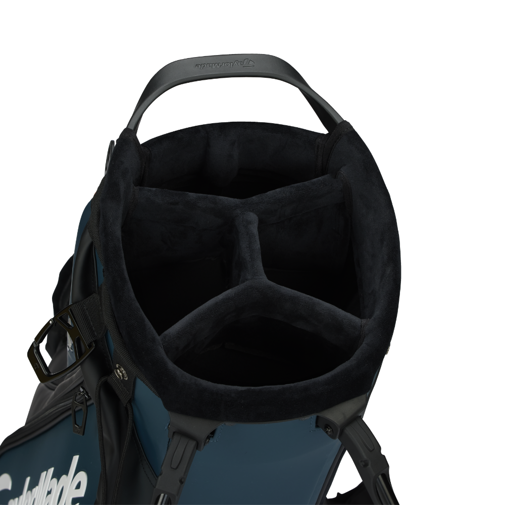 A soft 4-way velour top minimizes club rattling while providing organized storage, while black gunmetal trim and faux micro-perforated leather add a luxurious touch to this highly functional design. With its perfect balance of style and practicality, the 2026 Tour Stand Bag is ideal for golfers who demand top-tier performance and premium craftsmanship.