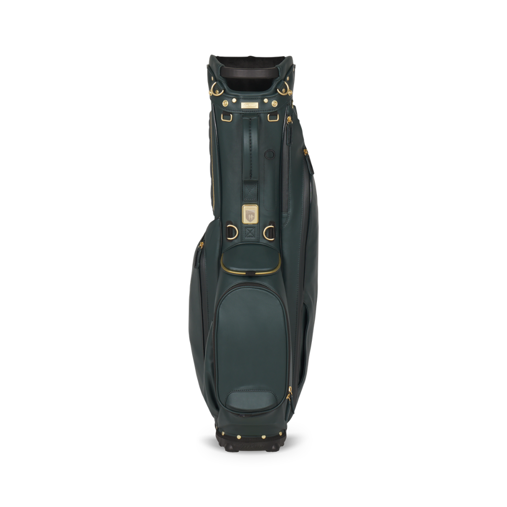 The Tee Time LINKSLEGEND Members Bag features all the benefits of the LINKSLEGEND Members bag, with premium metallic gold hardware and pine patent PU piping throughout the bag. A distinctive combination of modern amenities and a classic look makes for an exceptional carry.