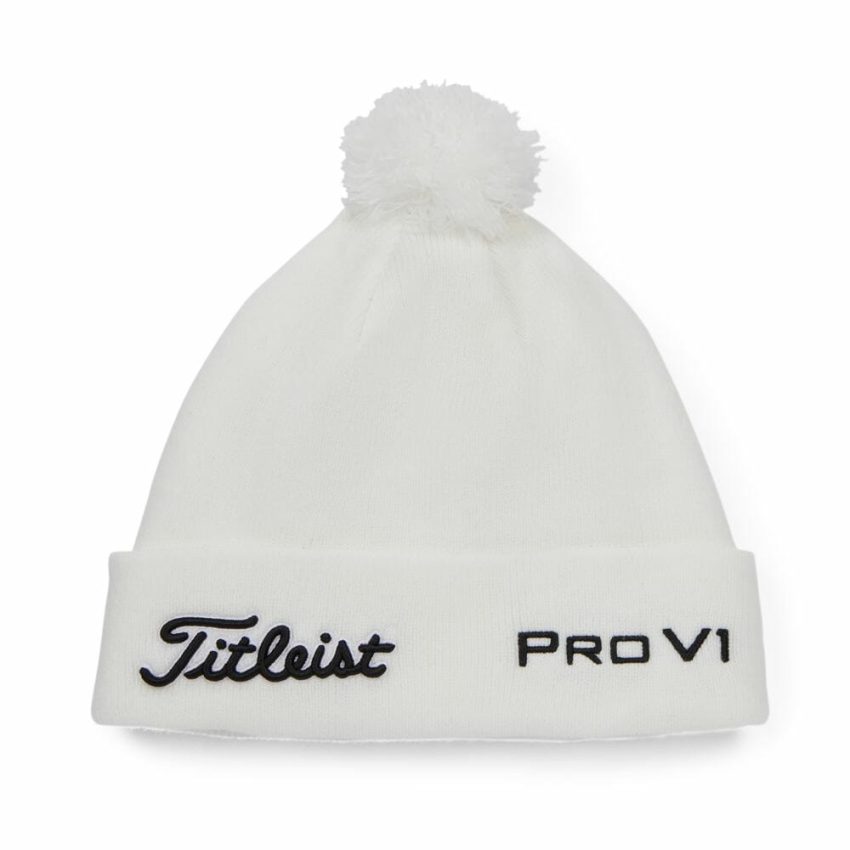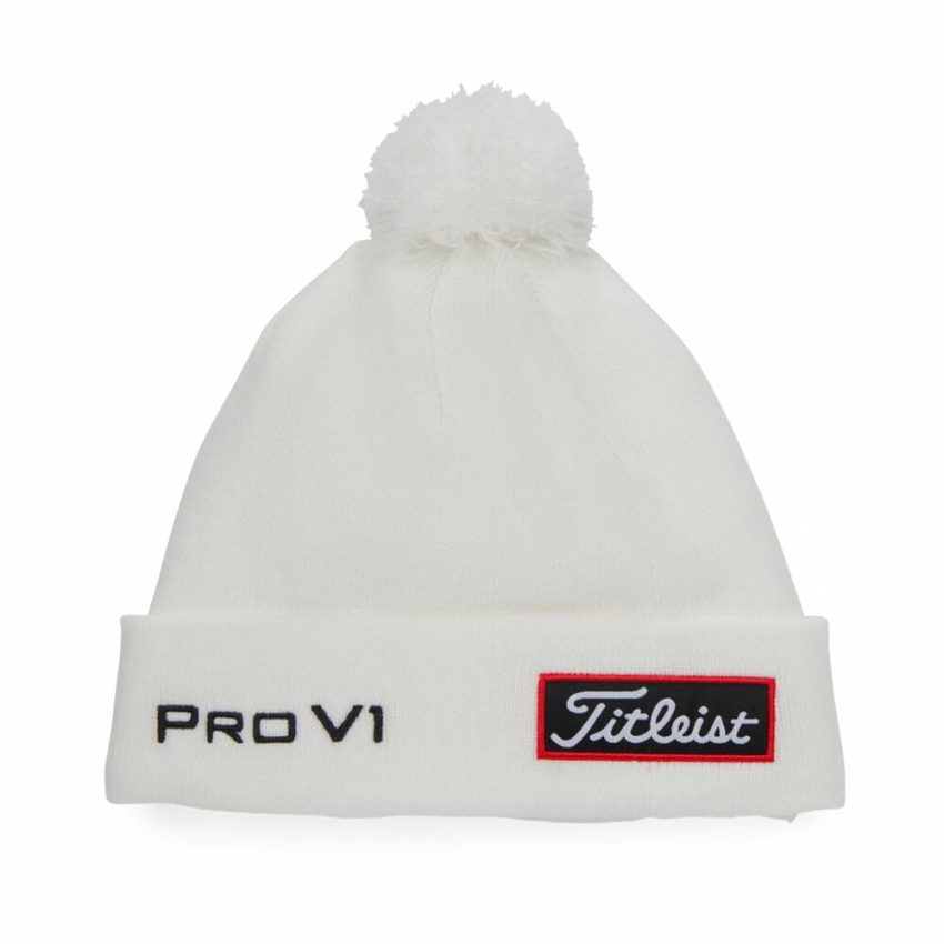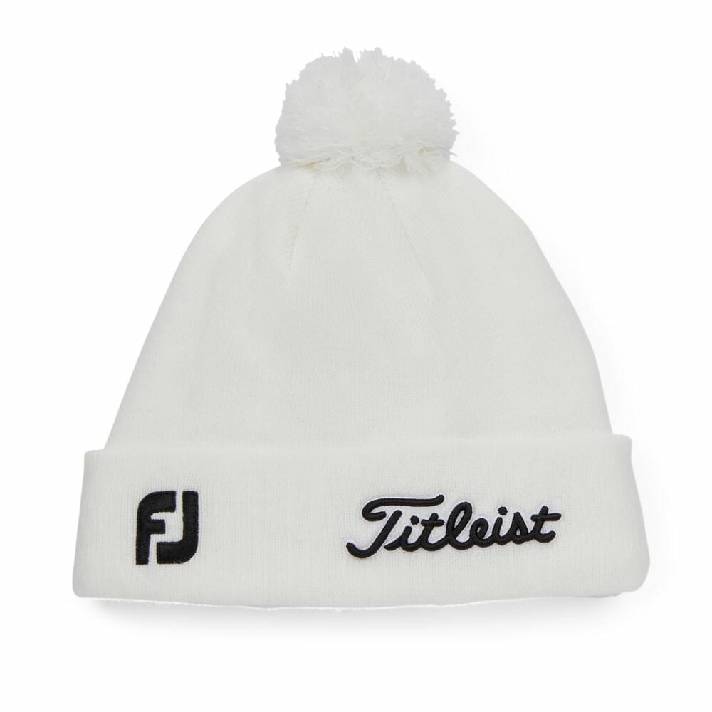 Titleist Tour Pom Pom Winter Hat is a classic on and off the course featuring Titleist logo, Pro V1 and FJ.