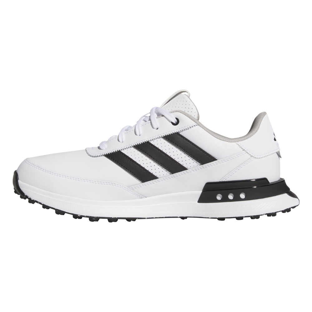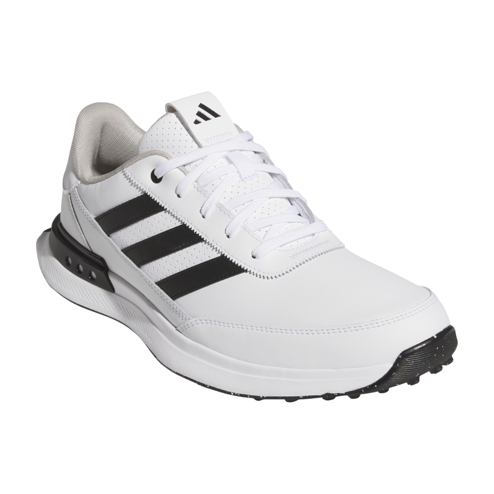 Embrace continuous comfort for casual rounds and more with these spikeless golf shoes that boast a design inspired by the lightweight and responsive feel of running shoes. Offering a stable stance and versatile, all-day style, these shoes feature a waterproof leather upper and protective toe cap to keep your feet dry on damp greens. The spikeless Adiwear outsole and supportive heel ensure stability and traction, providing a strong stance on the course while allowing for smooth transitions off it.