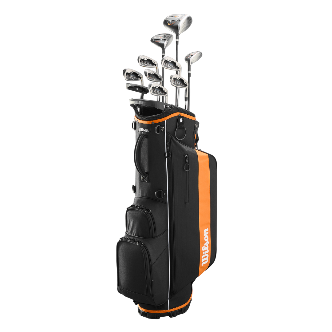 The Wilson X31 Mens Golf Package set has been designed for golfers looking to either start the game or improve on your current set. This Wilson Golf Package Set includes all your golfing requirements to get you out on the fairways and playing golf. The set features a large 10.5° driver with matching 3 wood and hybrid, The irons are stainless oversize irons with lightweight steel shafts, Large sweet spot on club faces and broader sole to help get the ball in the air. A heel and toe weighted putter helps with balance through the stroke and a lightweight stand bag with matching head covers complete the set.